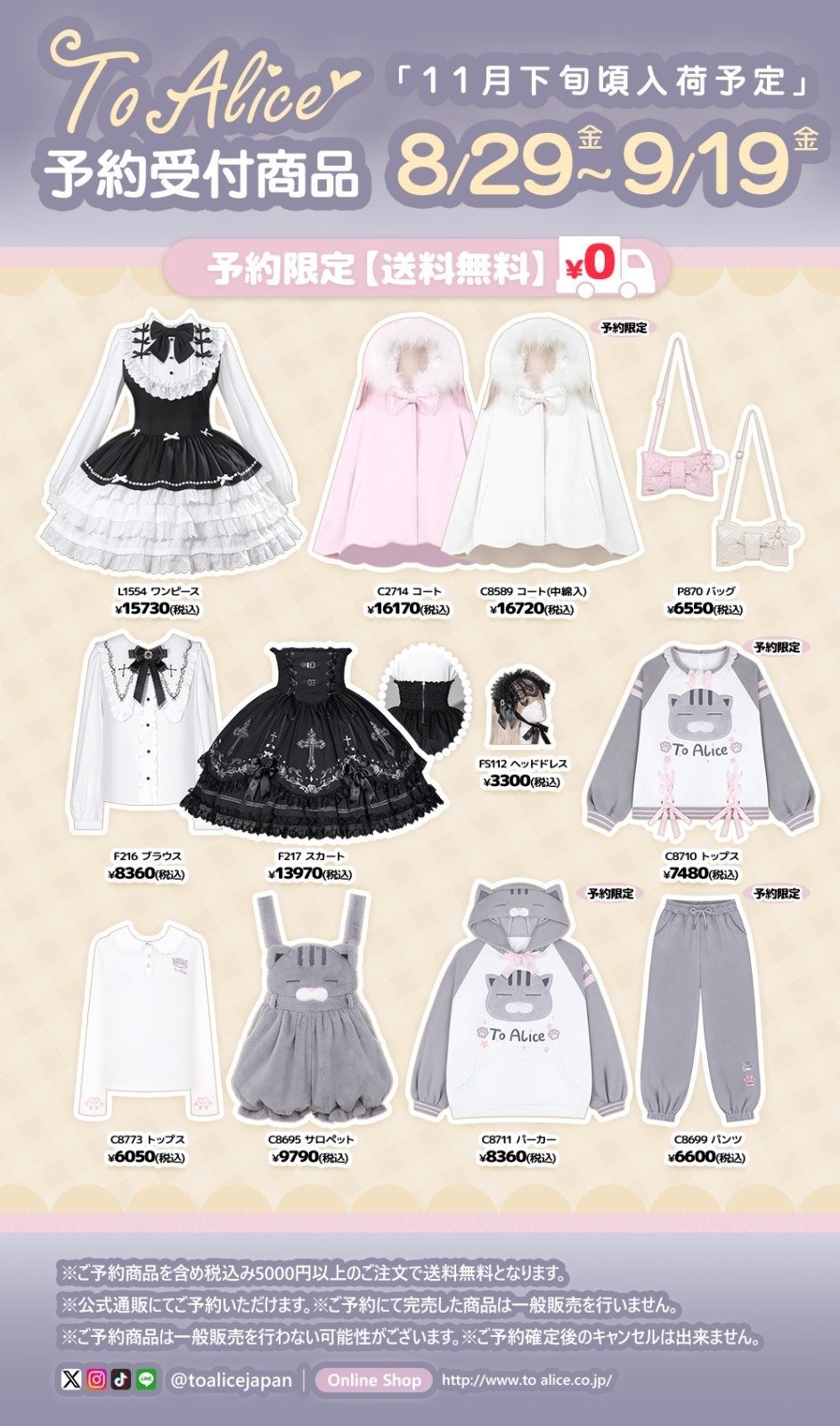 【ToAlice新作予約商品】8/29(金)〜9/19(金)