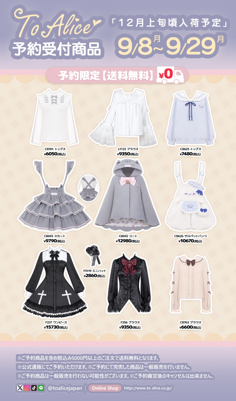 【ToAlice新作予約商品】9/8(月)〜9/29(月)