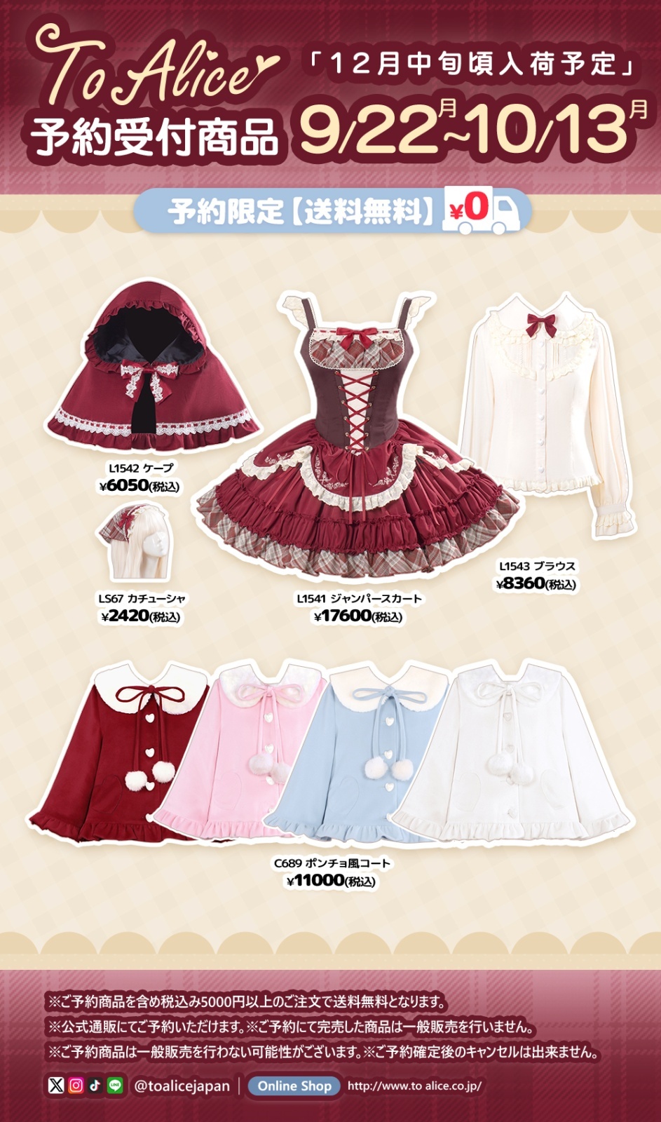 【ToAlice新作予約商品】9/22(月)〜10/13(月)