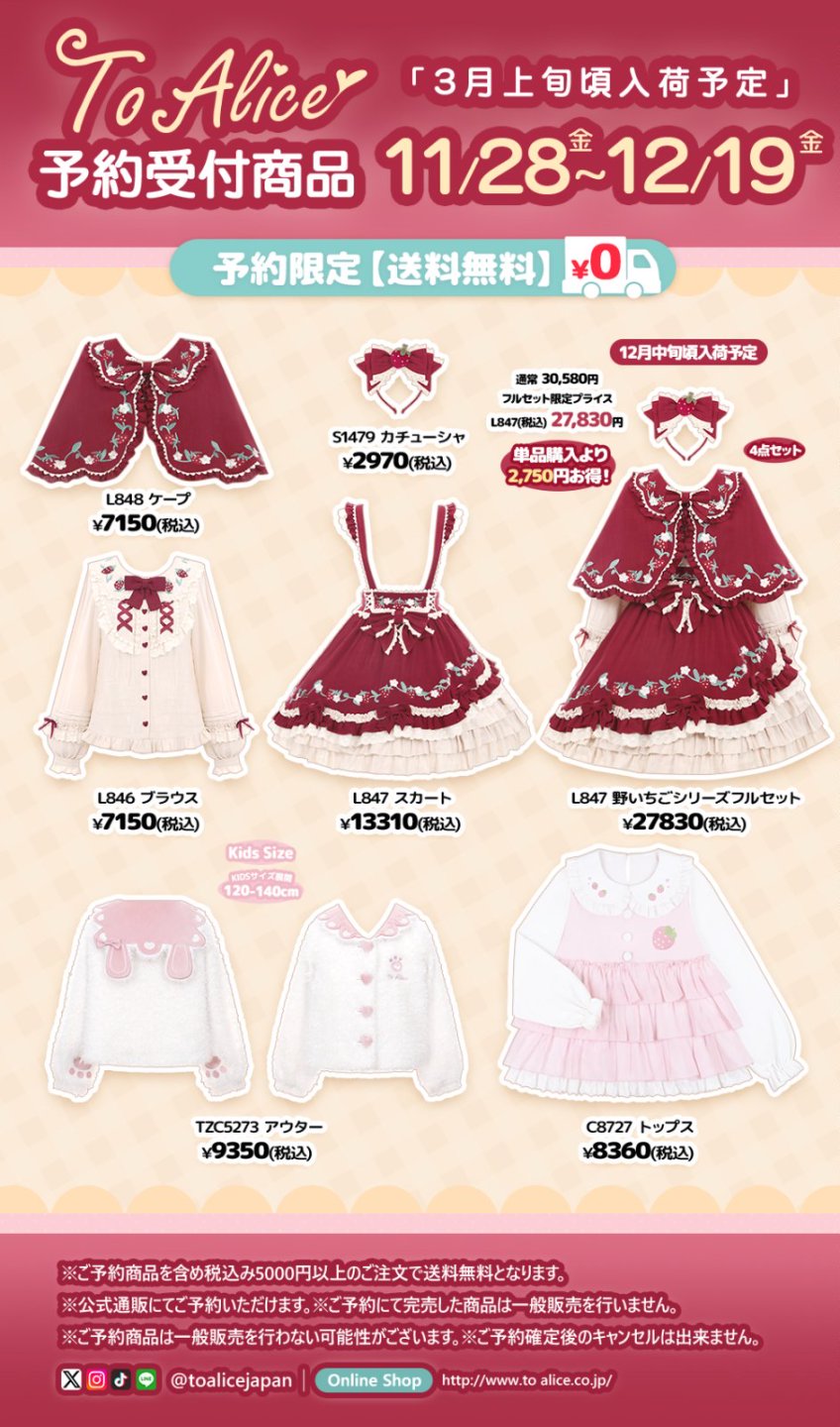【ToAlice新作予約商品】11/28(金)〜12/19(金)