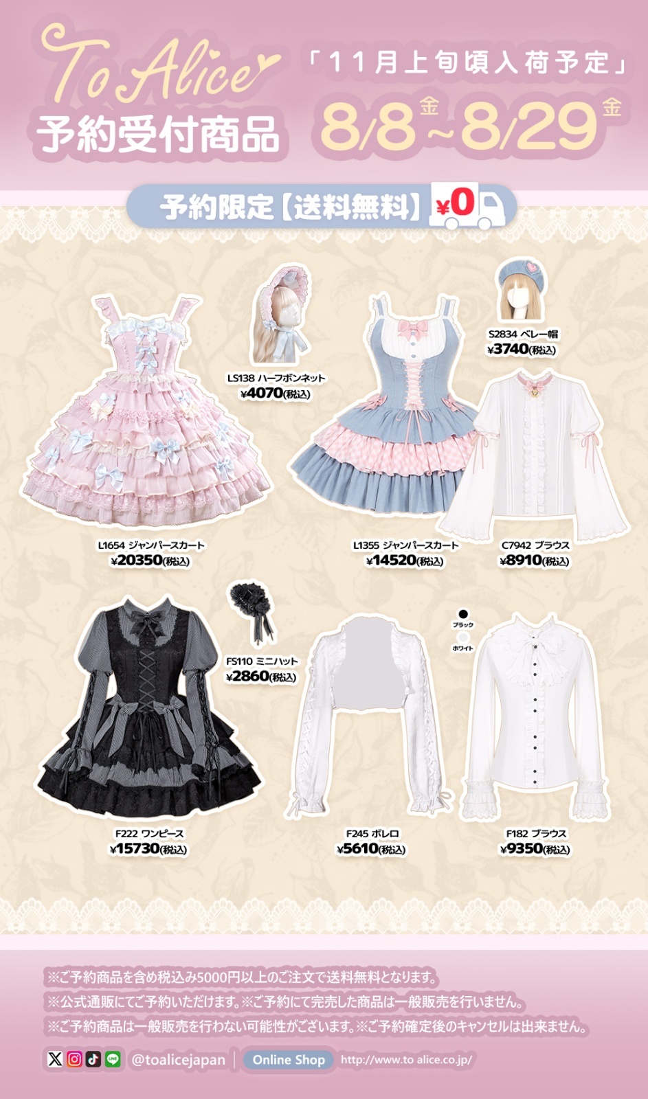 【ToAlice新作予約商品】8/8(金)〜8/29(金)