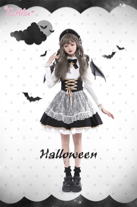 小悪魔モチーフのジャンパースカート。小悪魔風のリボン付き。