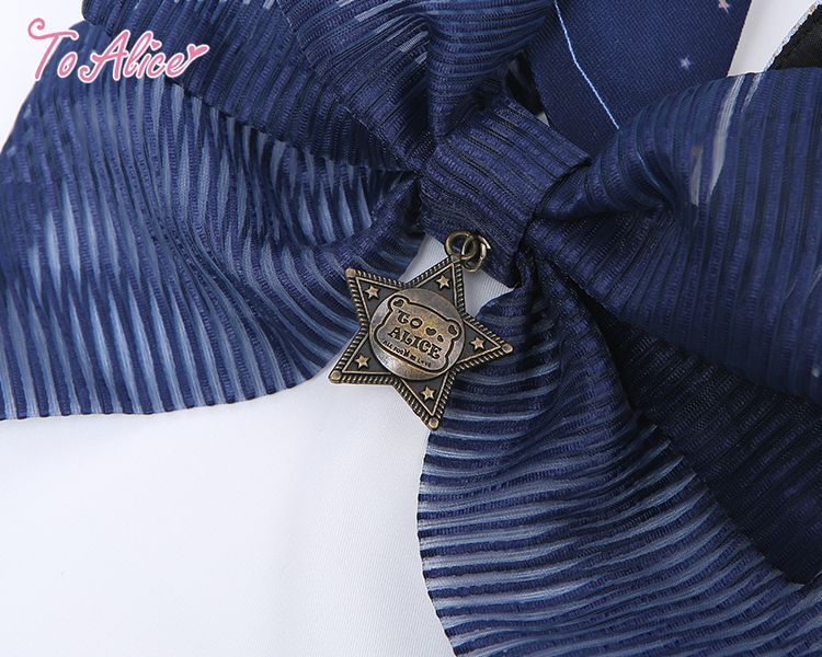 プラネタリウム柄セーラー襟のトップス。リボンにはToAliceオリジナルチャーム付き。