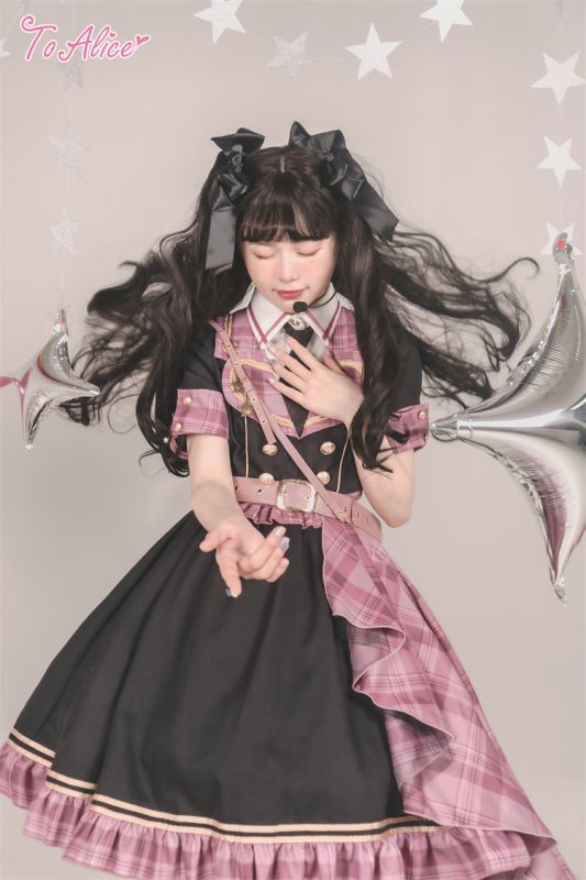 ロックアイドルモチーフのタータンチェック切り替えワンピース。