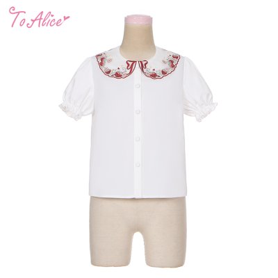 繊細な刺繡が入った襟のストロベリーブーケ長袖ブラウス。