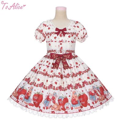 【ToAlice】L1210 StrawberryRabbitプリントサロペットスカート [L1210]