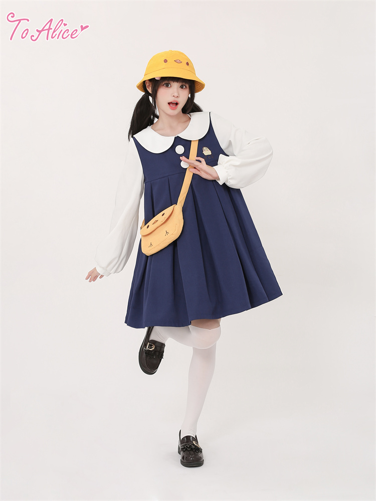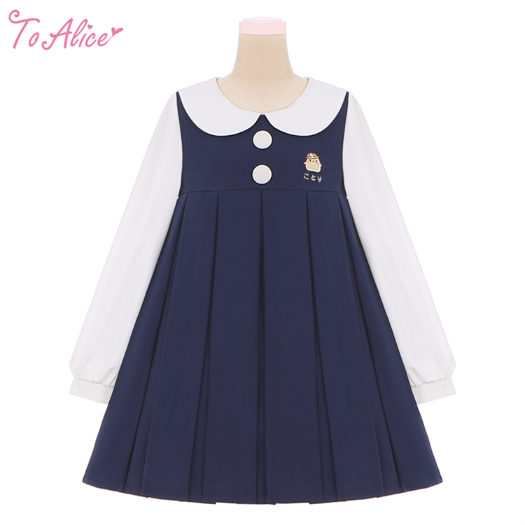 【ToAlice】C8085ことり幼稚園長袖ボックスプリーツワンピース [C8085]