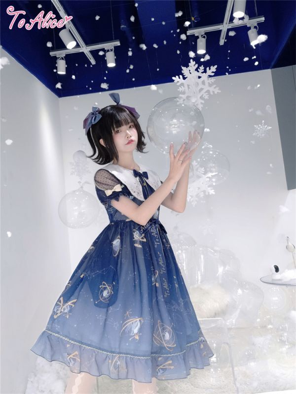 【ToAlice】L1460プラネタリウム刺繍入り半袖ワンピース [L1460]