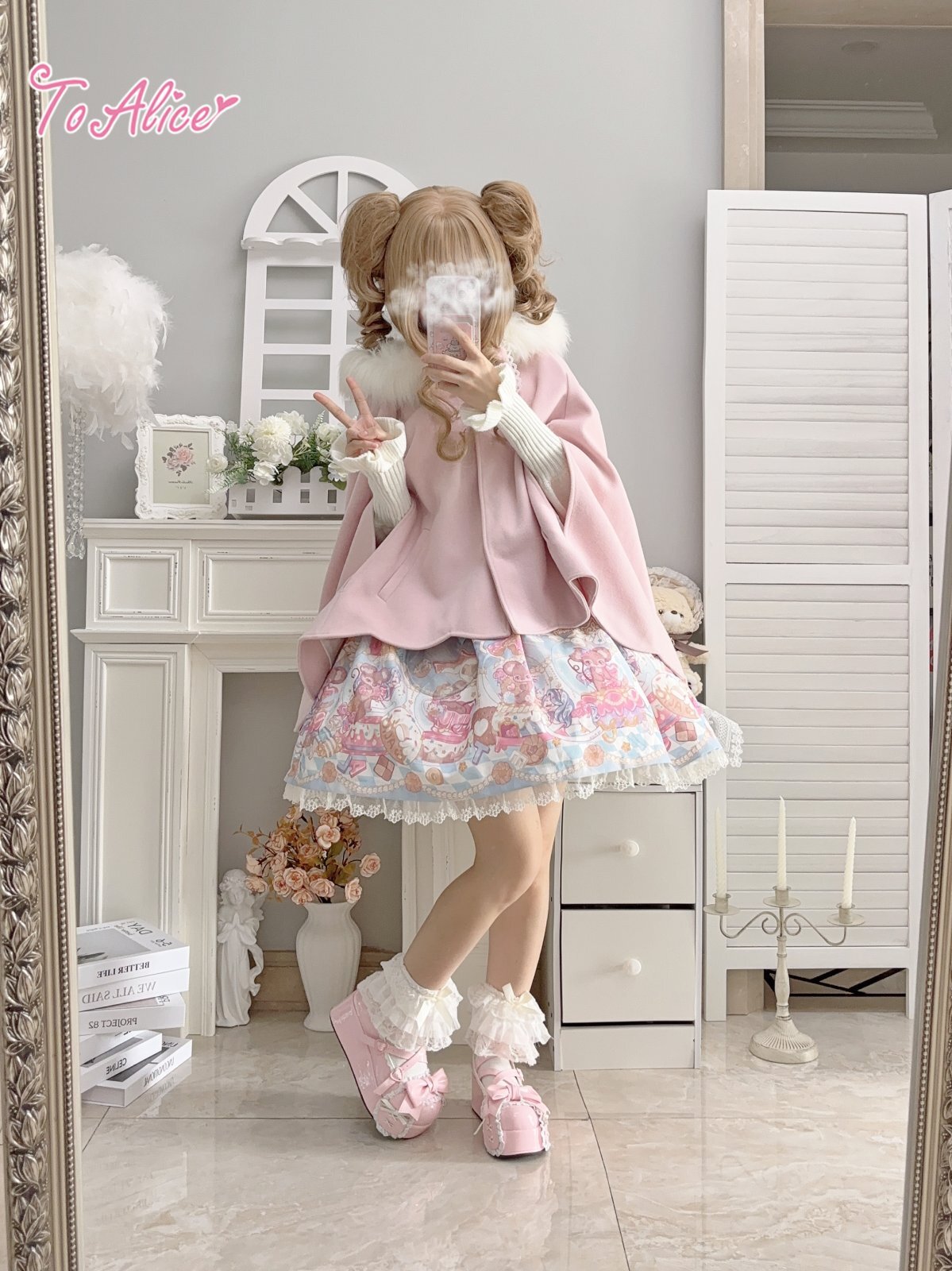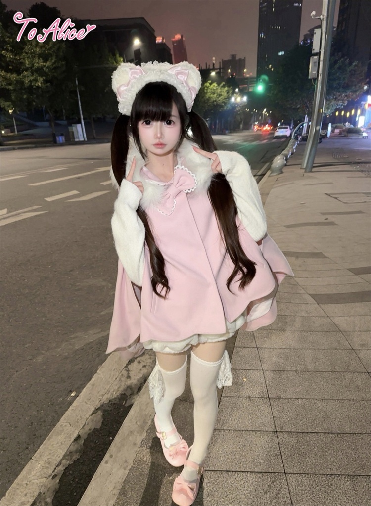- > 【ToAlice】C8589ふわふわラビットマントコート(中綿入り)