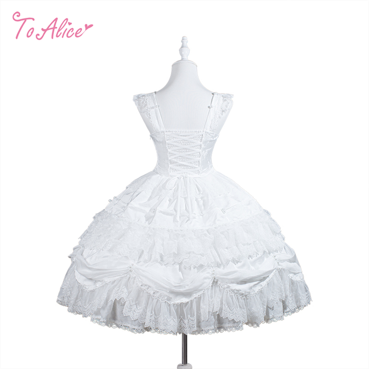 繊細なレースフリルがたっぷりあしらわれた豪華なジャンパースカート。