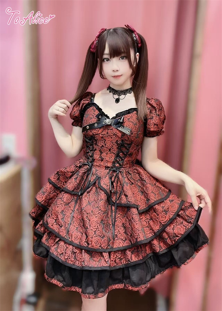 【BlackShamrock】F177ブラッディローズティアードワンピース [F177]
