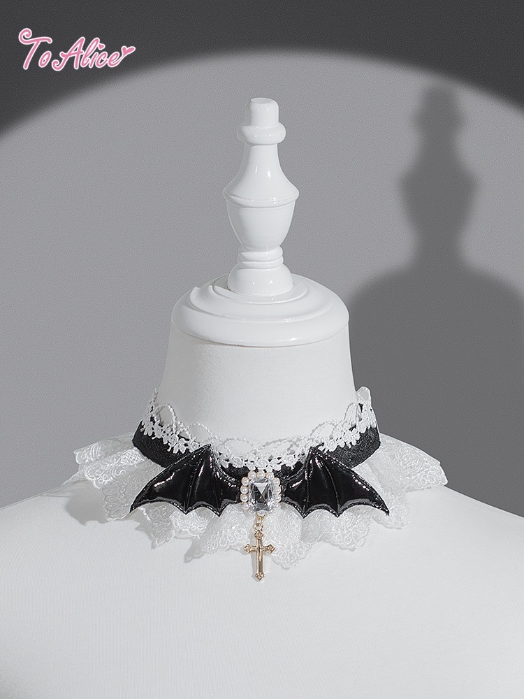 ヴァンパイアモチーフの羽付きフリルチョーカー。