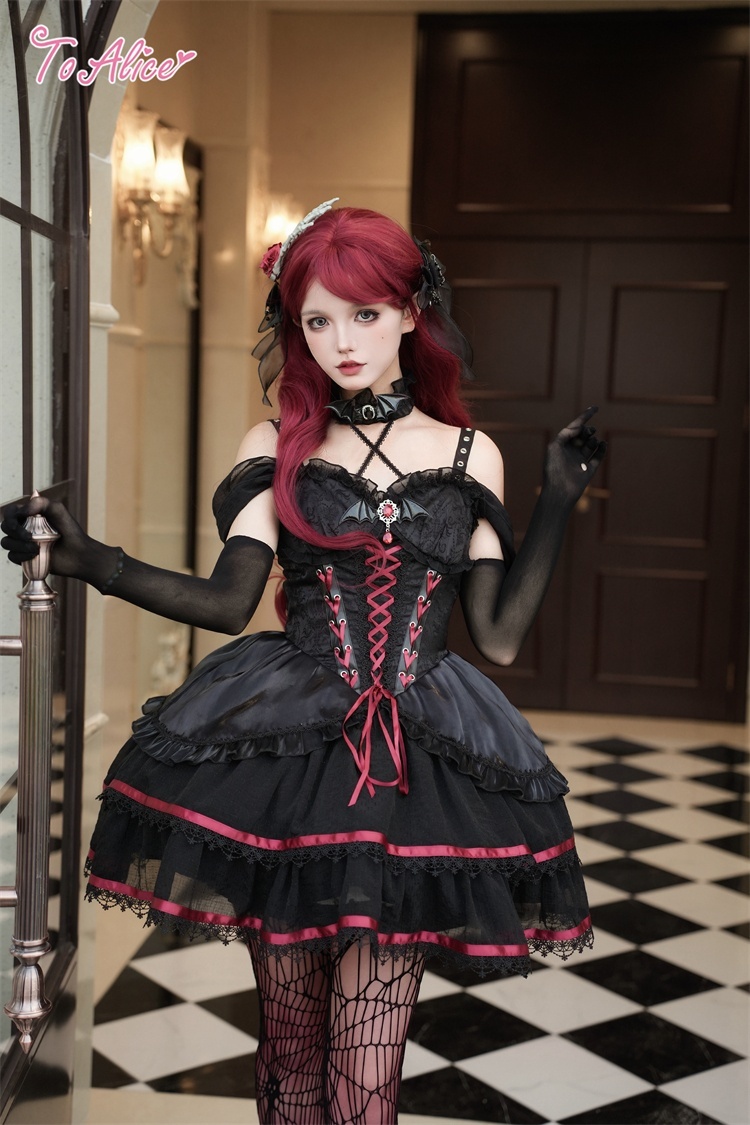 【Black Shamrock】F210レースアップコルセット風ドレス [F210]
