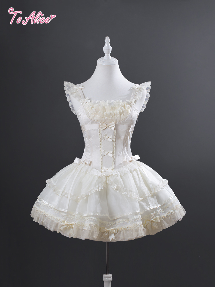 ホワイトローズのコルセットシルエットドレス。※ブローチは別売りとなっております。