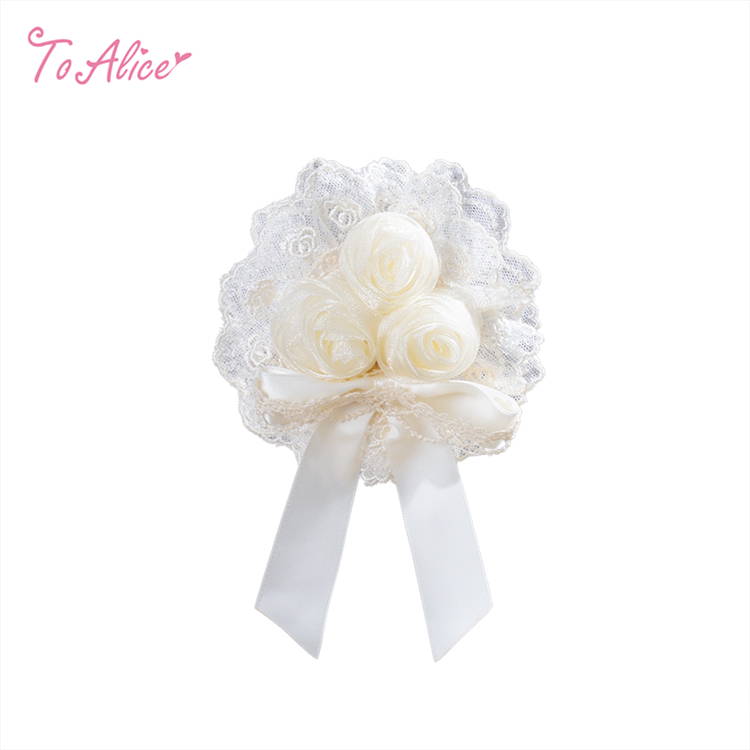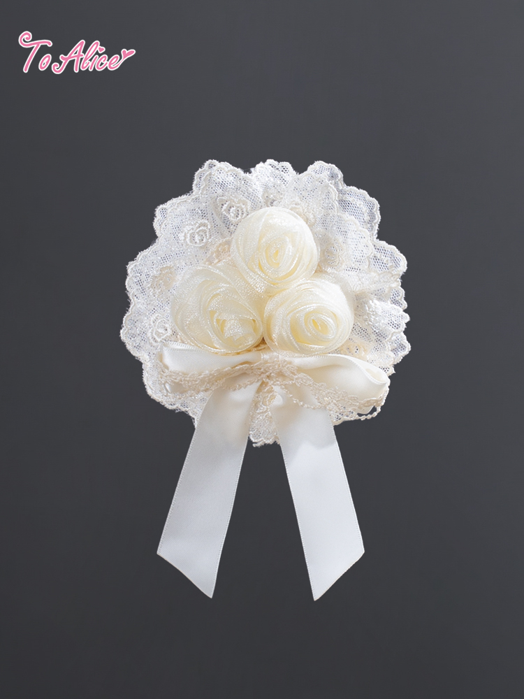 ホワイトローズのブーケ風ブローチ。