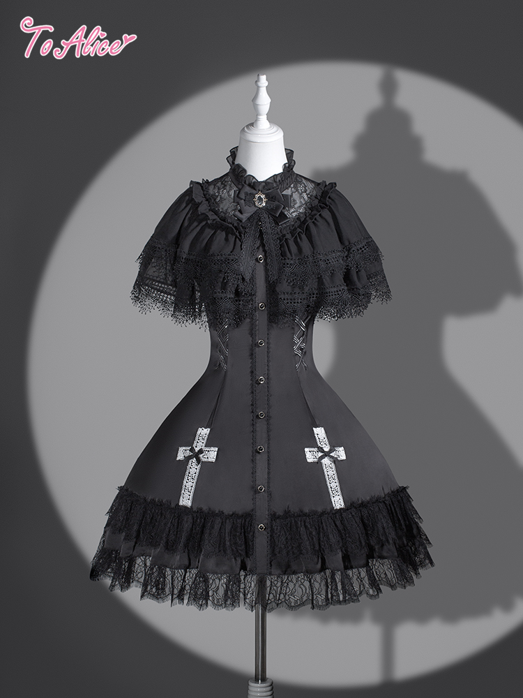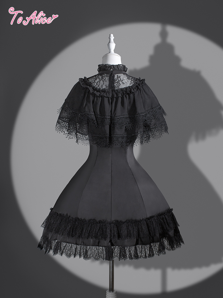 【Black Shamrock】F214レース×クロスラッフルフリルケープワンピース [F214]