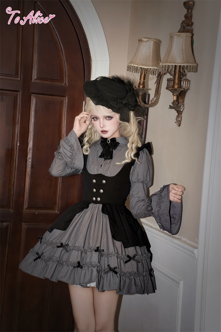 【Black Shamrock】F158 ダークアカデミアレイヤード風ジャンパースカート [F158]