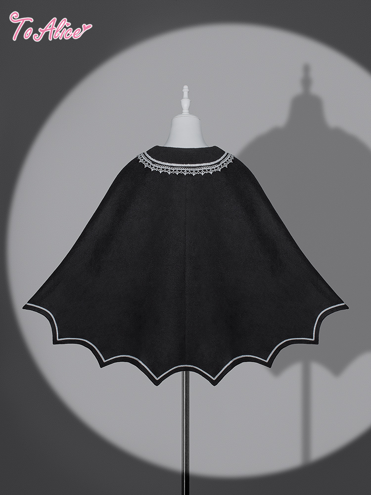 【Black Shamrock】F242 クロス刺繍マントコート [F242]