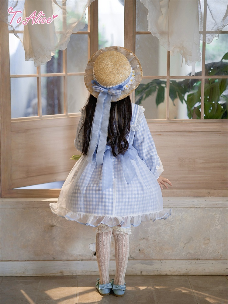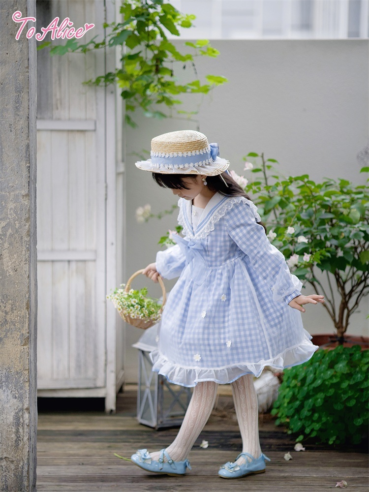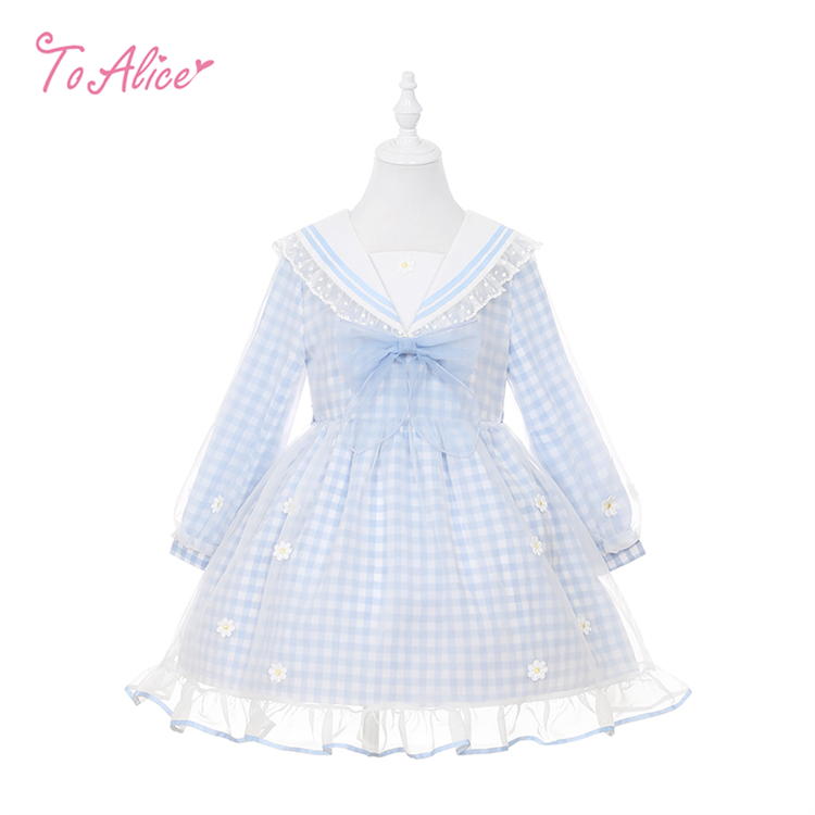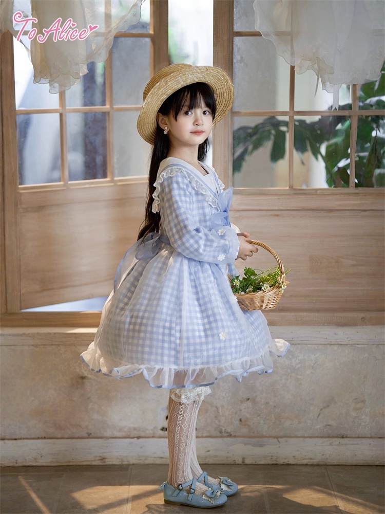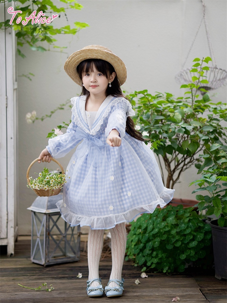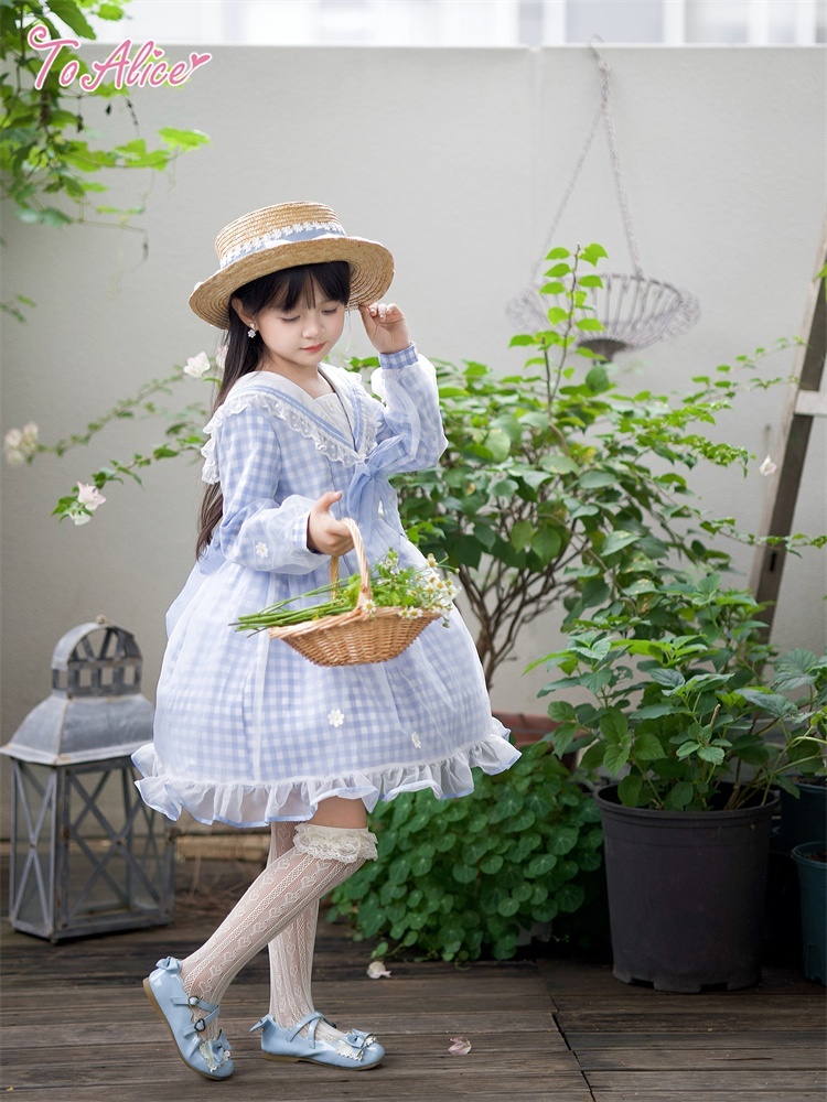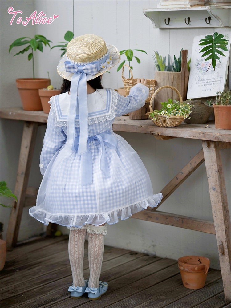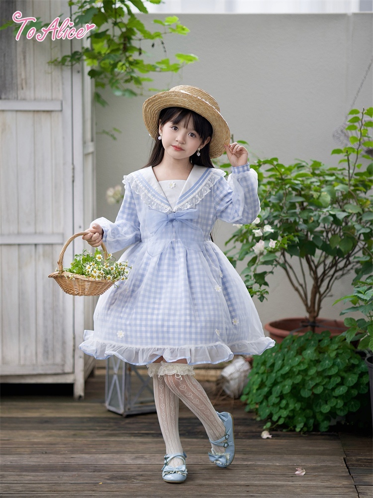 【送料無料】【ToAlice Kids】TZC8629リトルデイジーチェックセーラー長袖ワンピース《予約受付》 [TZC8629]