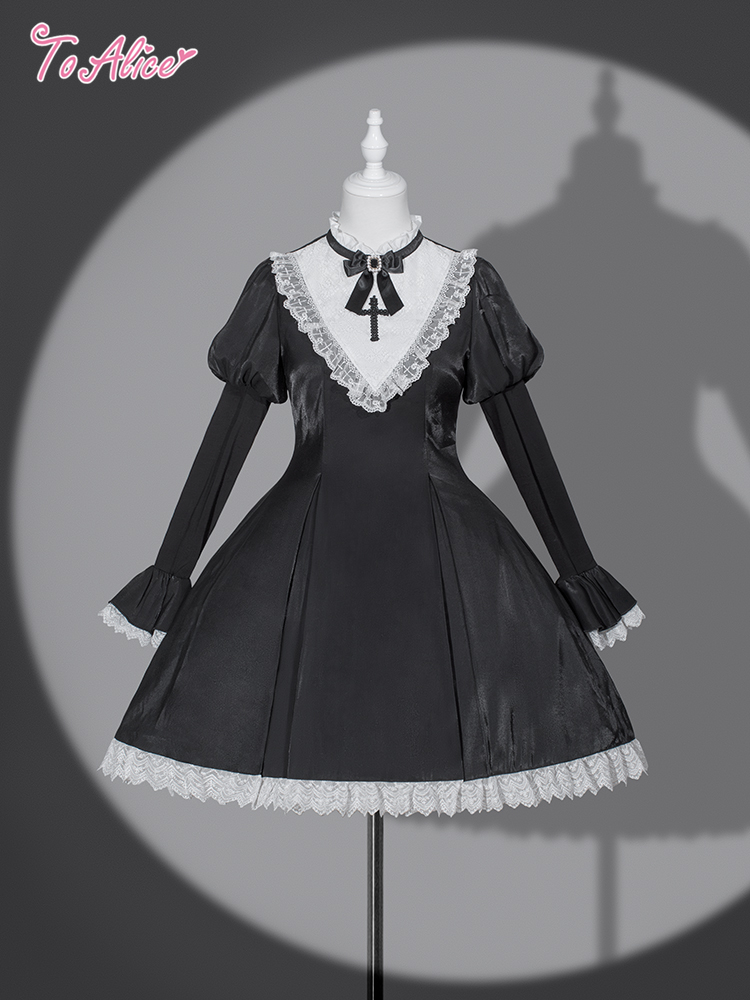 クロスデザインとジュリエットスリーブのシスターのようなワンピース。