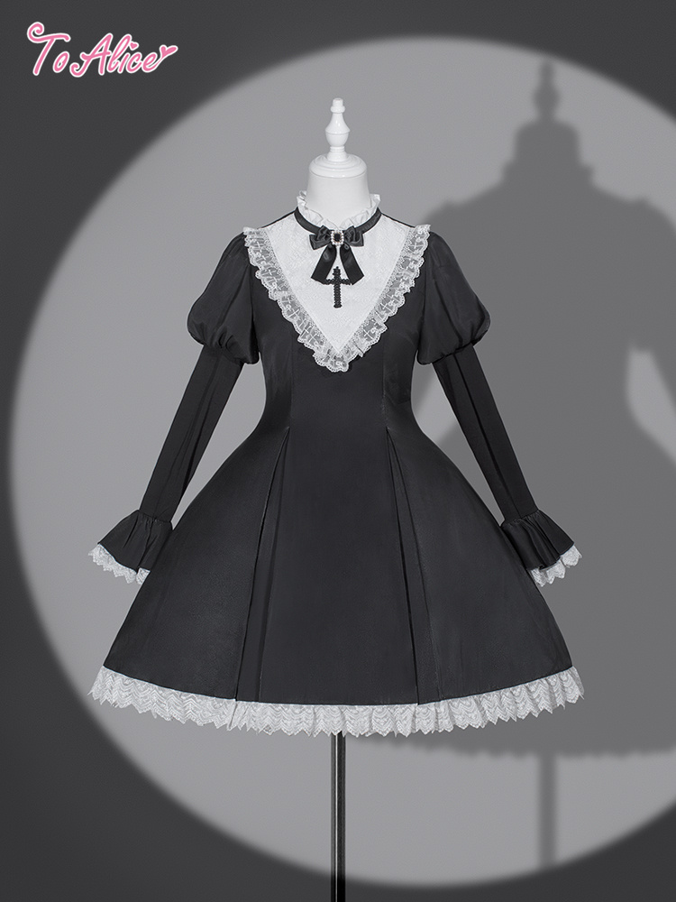 【Black Shamrock】F239 クロスデザインジュリエットスリーブワンピース [F239]