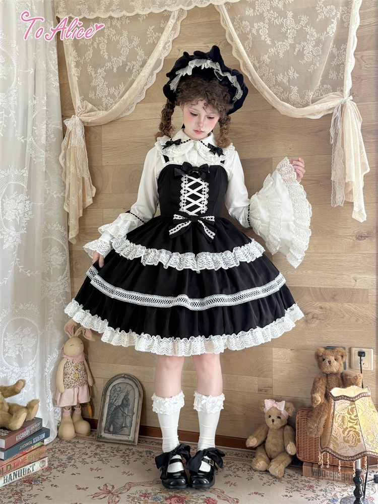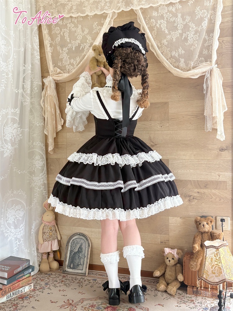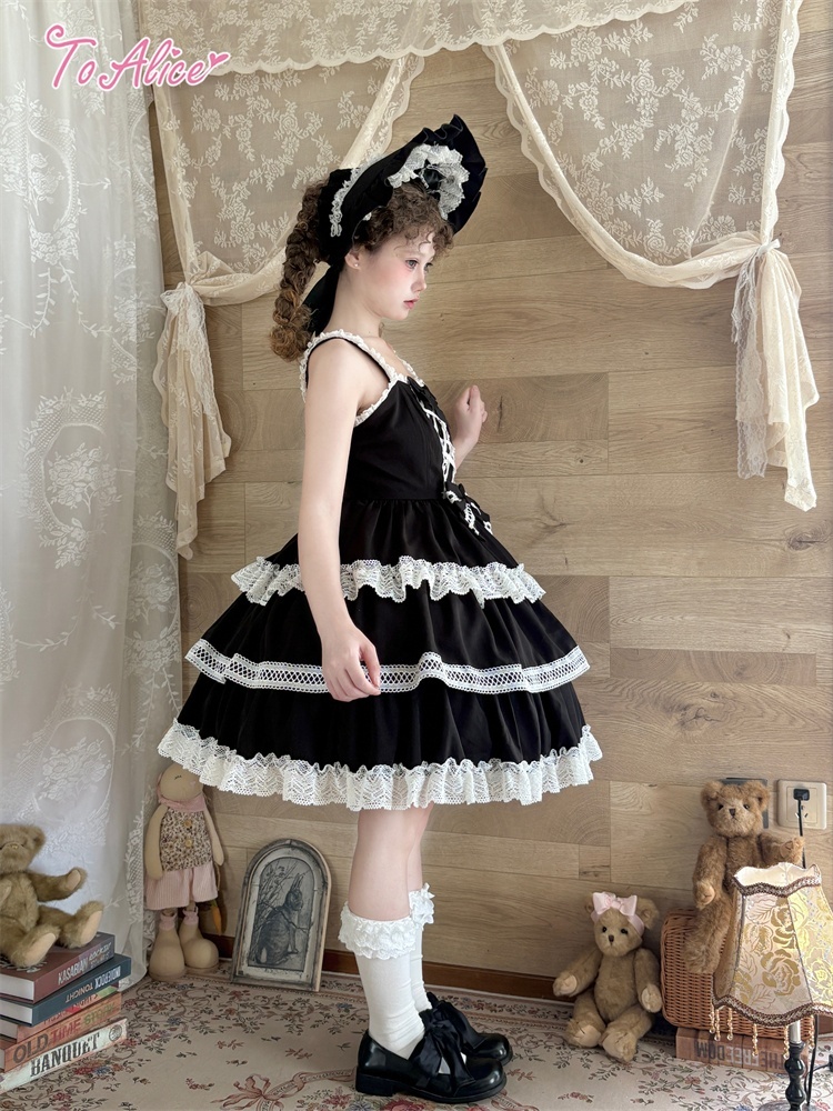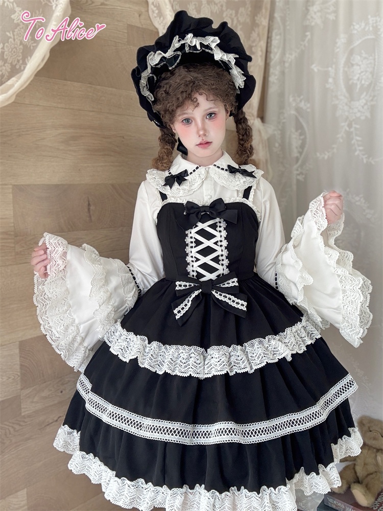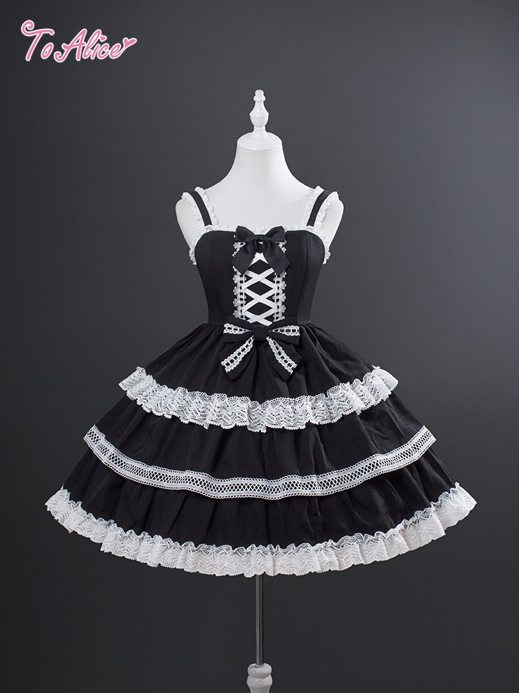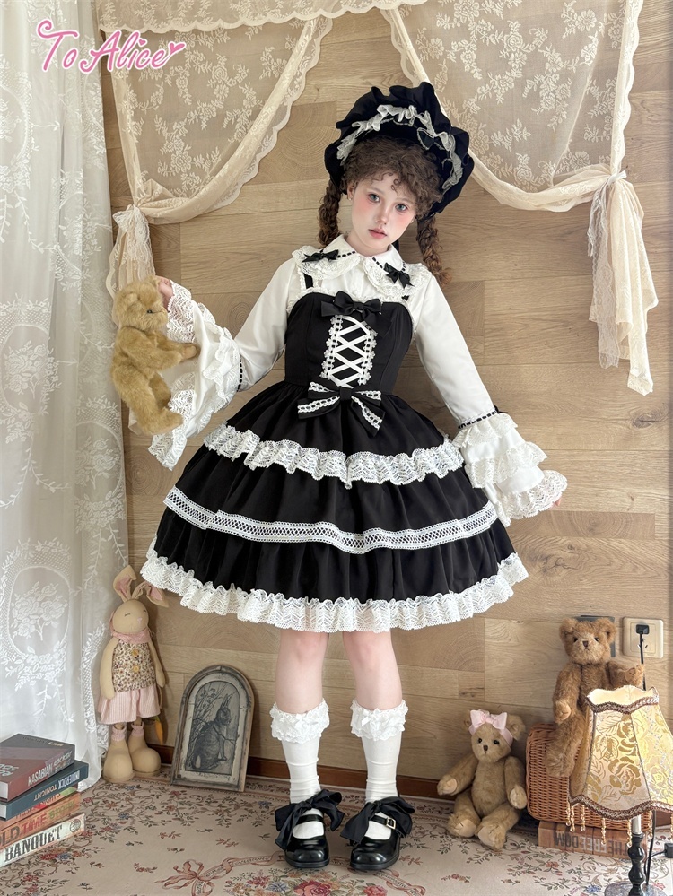 たっぷりのコットンレースとレースアップデザインが可愛いドーリーなジャンパースカート。