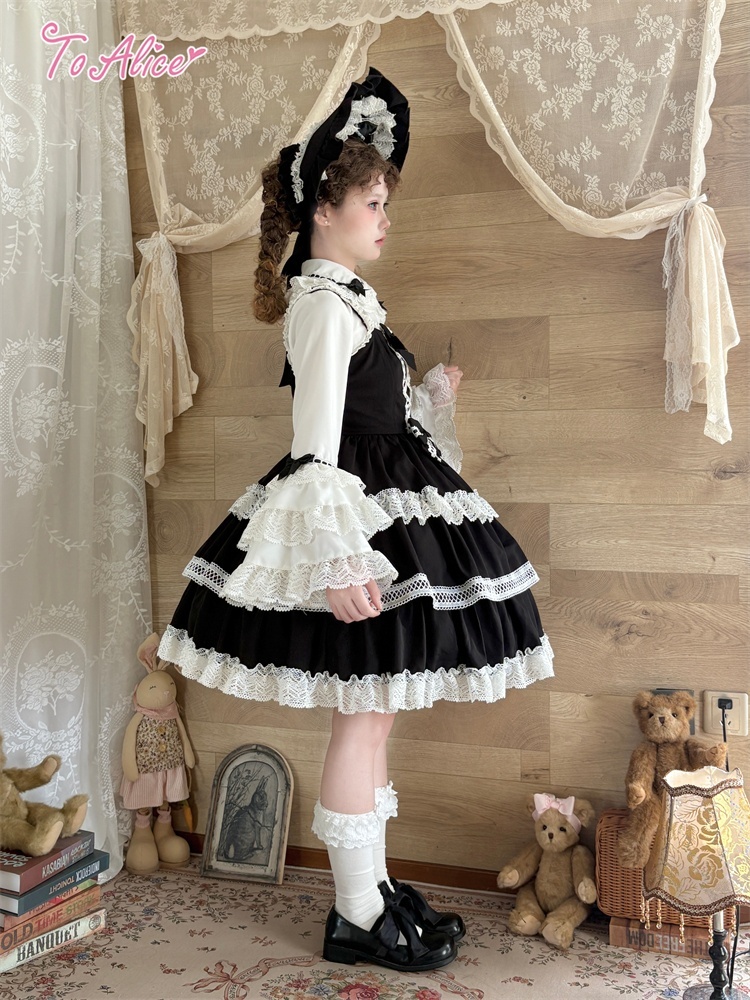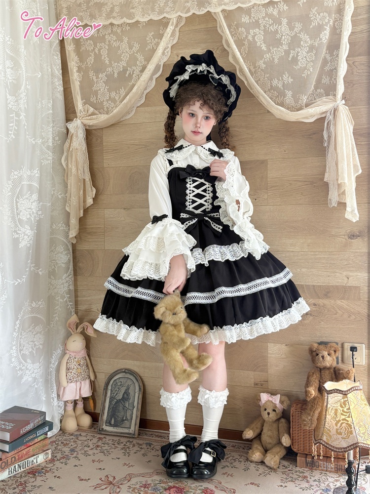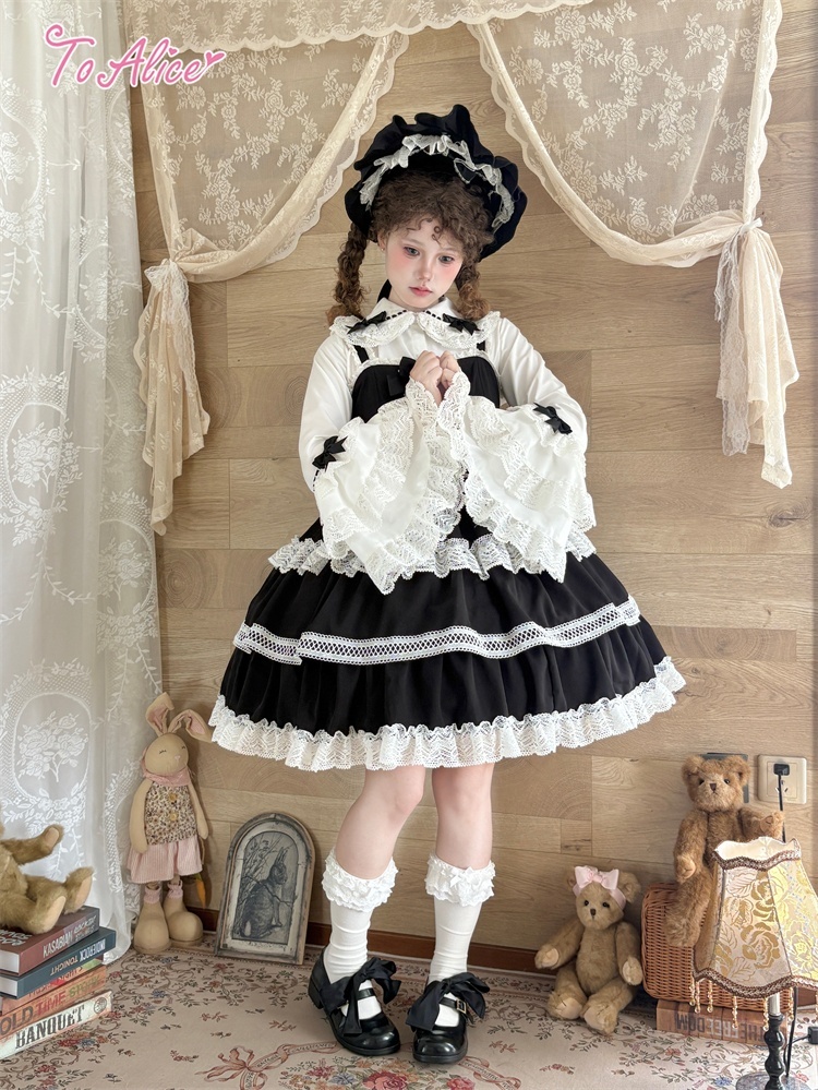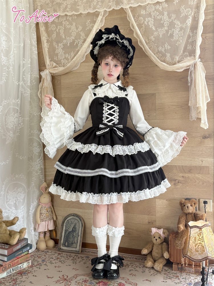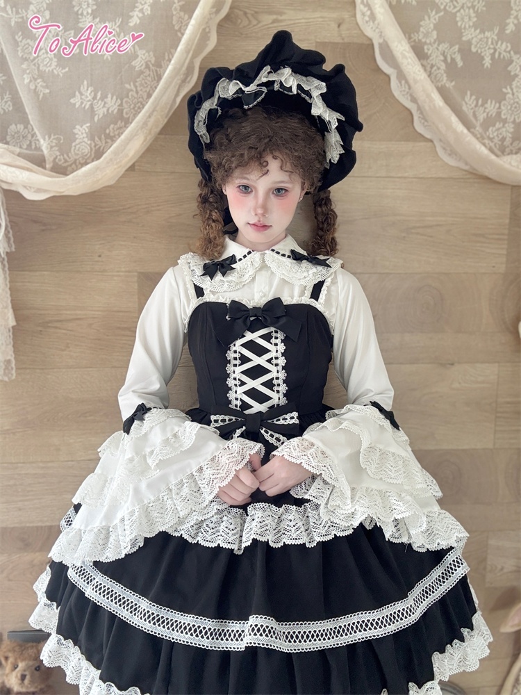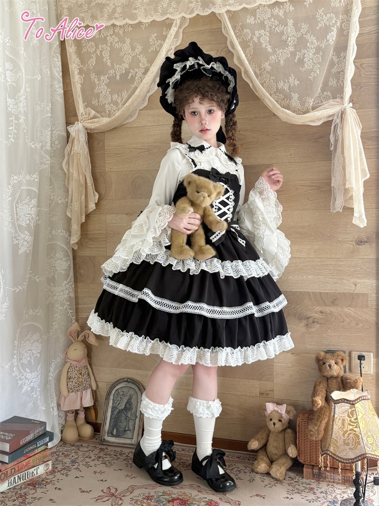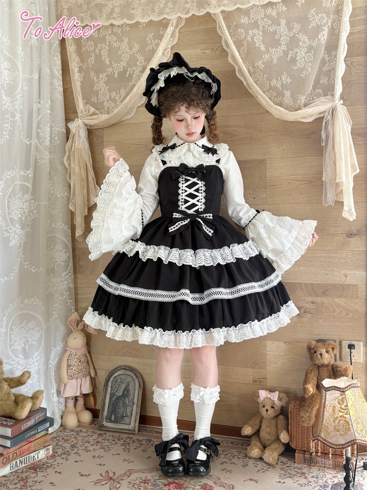 たっぷりのコットンレースとレースアップデザインが可愛いドーリーなジャンパースカート。