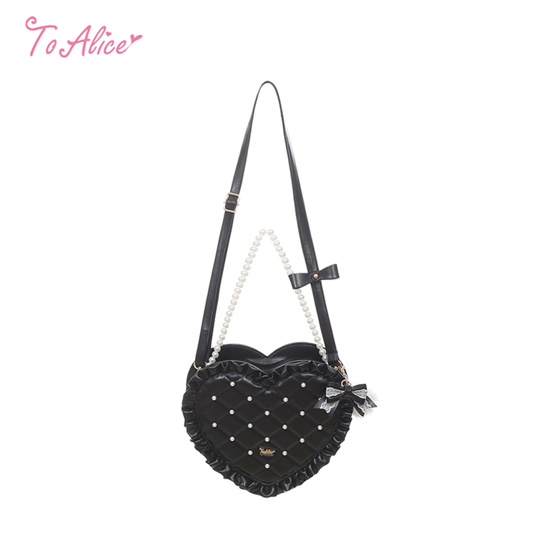 ぷっくりキルティングにパールをあしらったハート型のハンド&ショルダー2Wayバッグ。