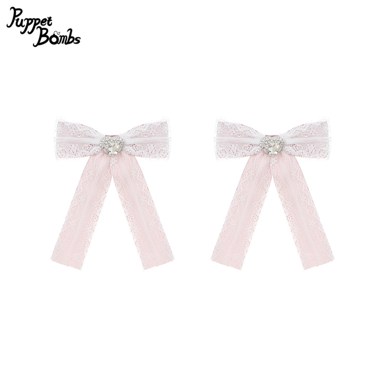 【PuppetBombs】QS188 レース重ねハートビジューヘアクリップセット [QS188]