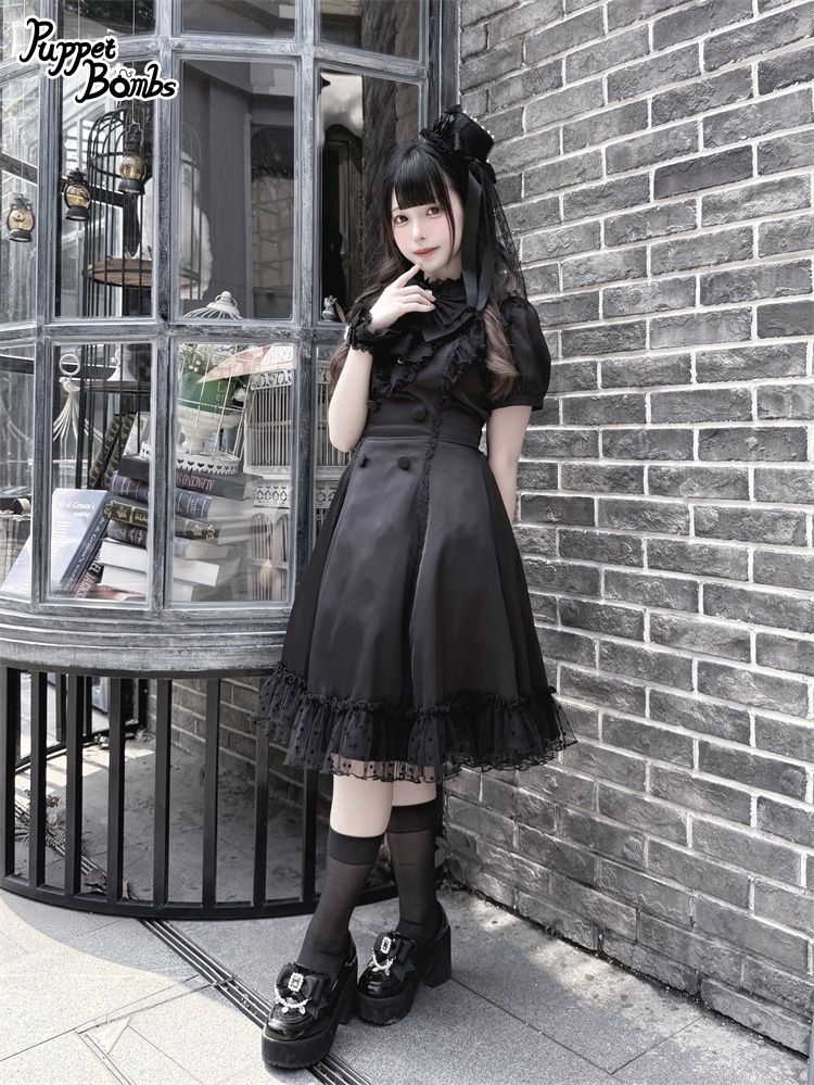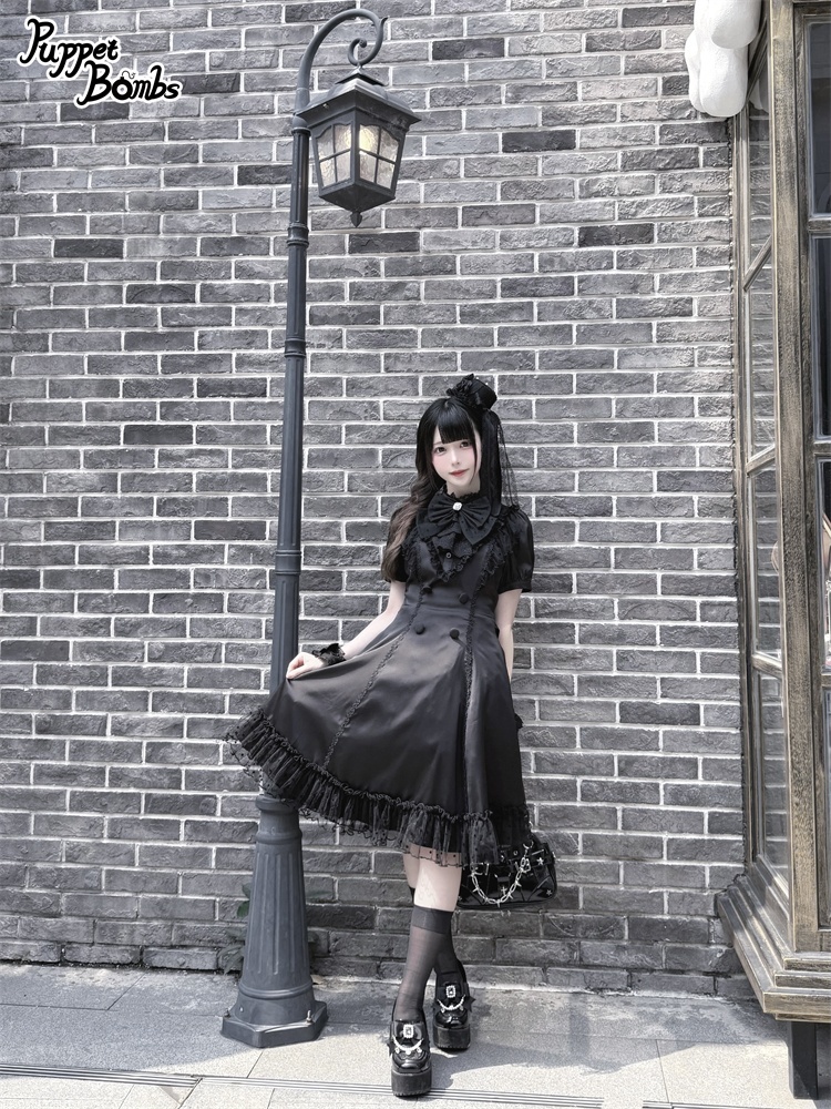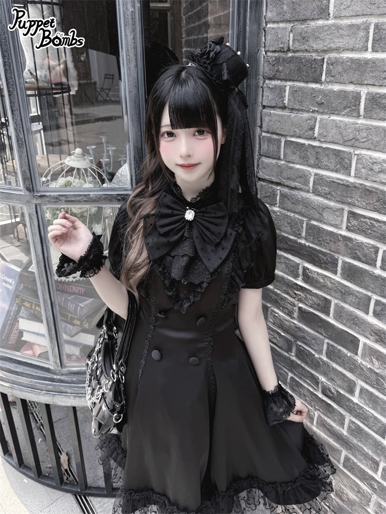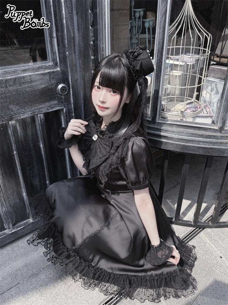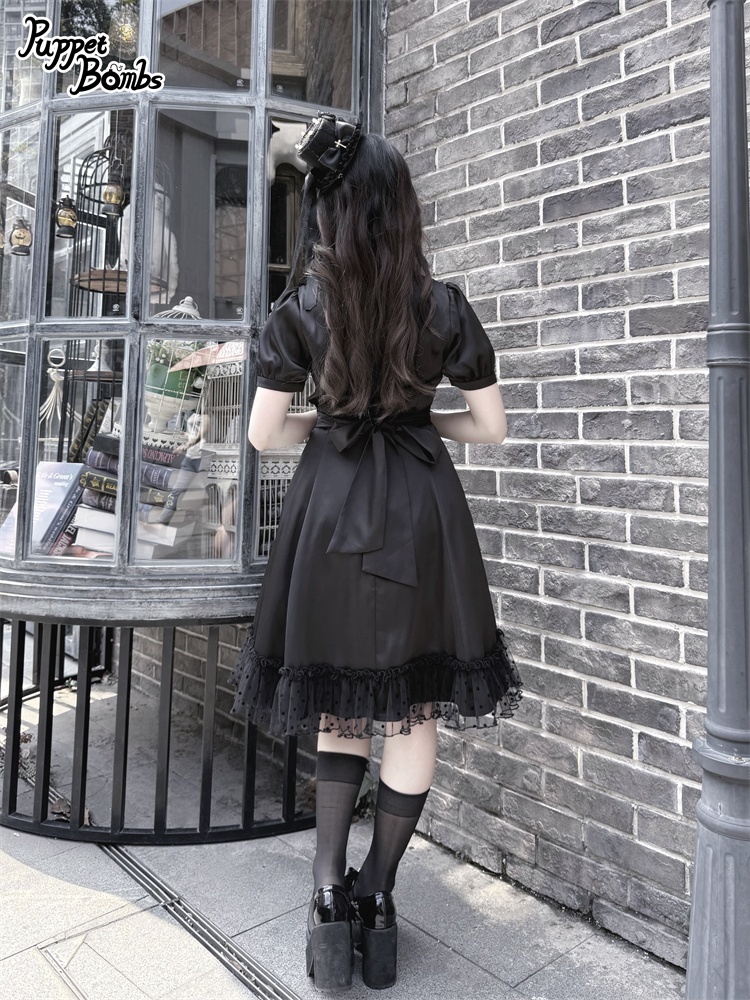 【PuppetBombs】Q408ビッグリボンパフ袖ワンピース [Q408]