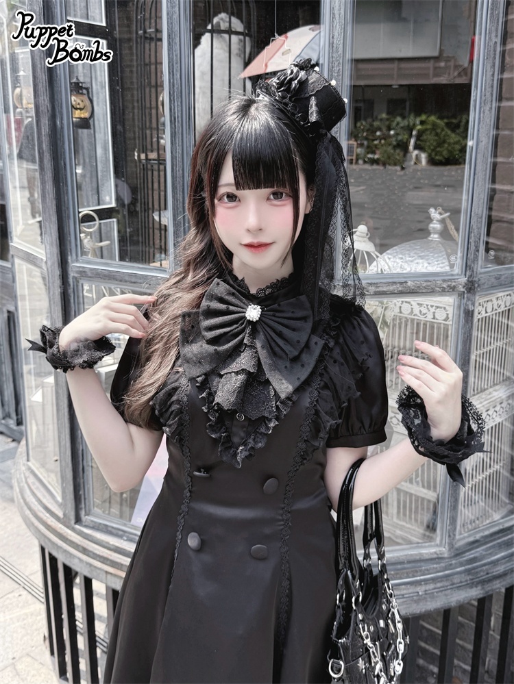 【PuppetBombs】Q408ビッグリボンパフ袖ワンピース