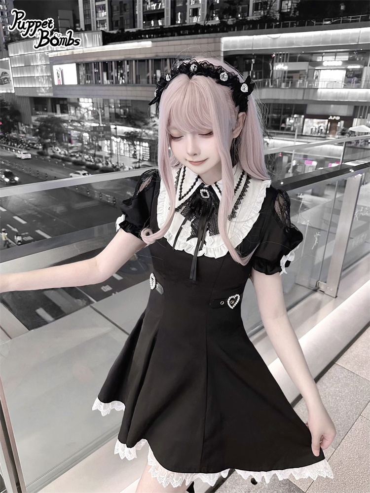 【PuppetBombs】Q436 肩レースヨーク切り替えワンピース [Q436]
