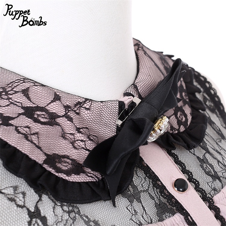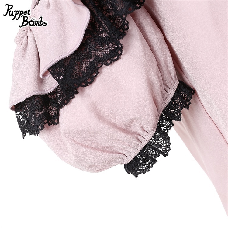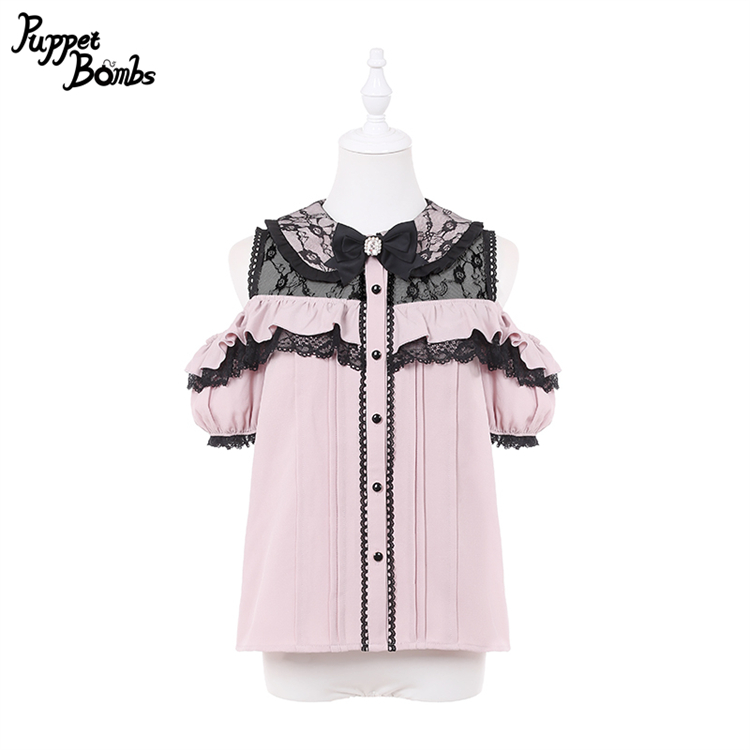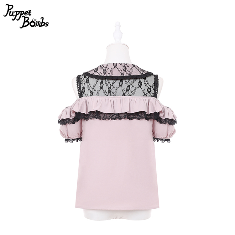 【PuppetBombs】Q443 レース肩あきフリル半袖ブラウス [Q443]