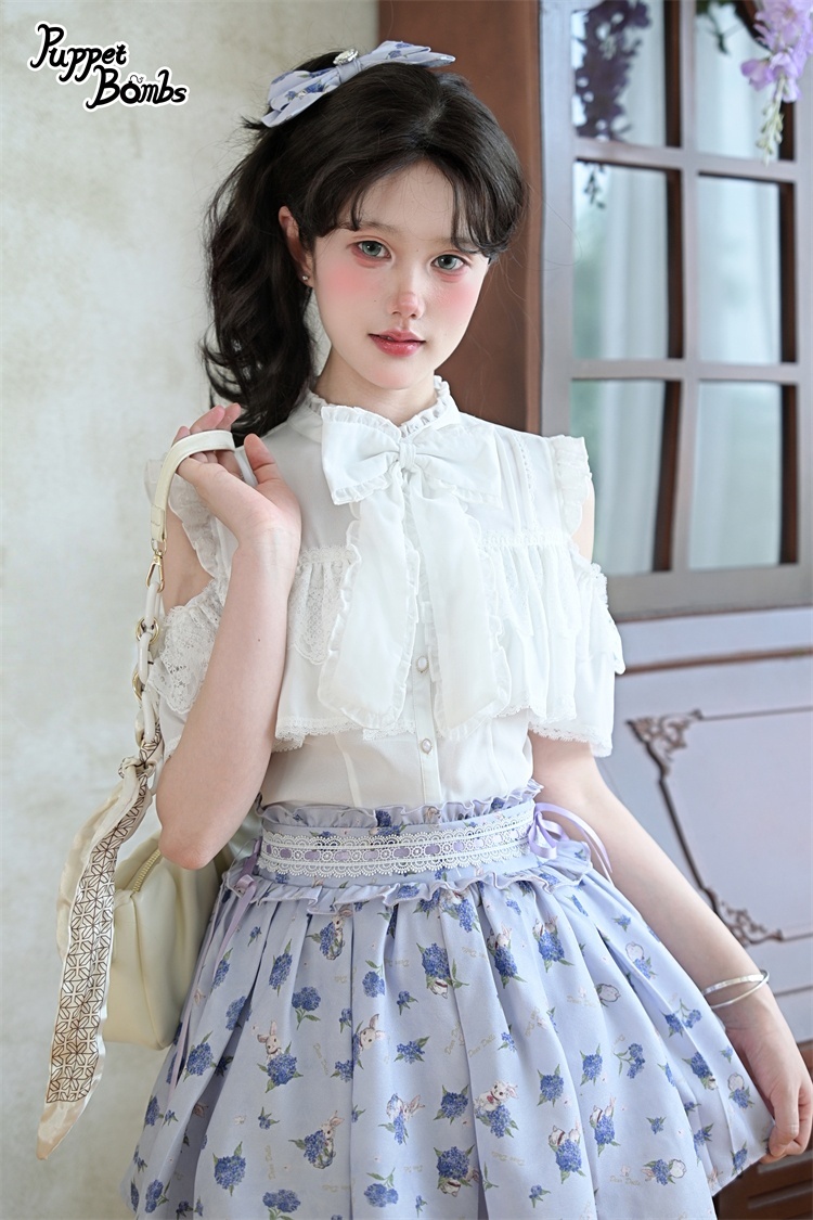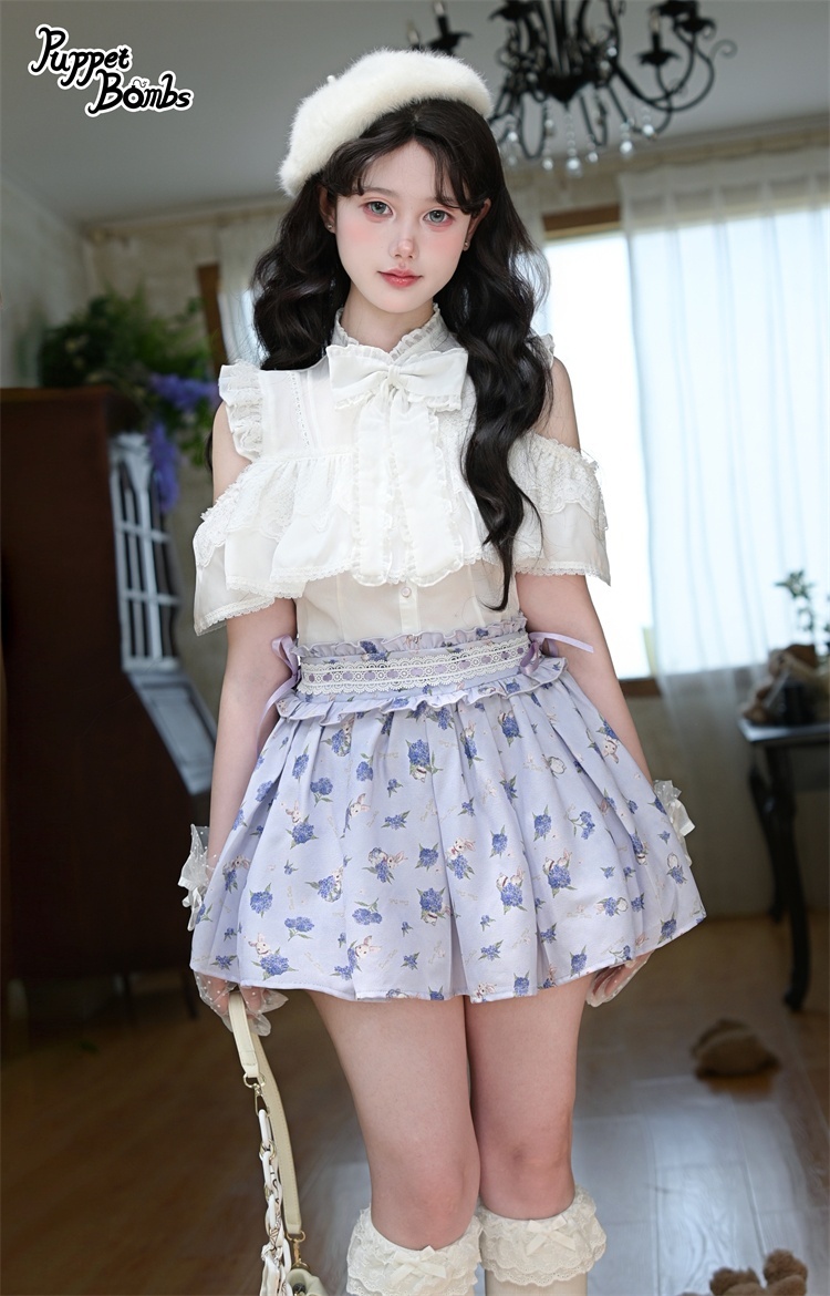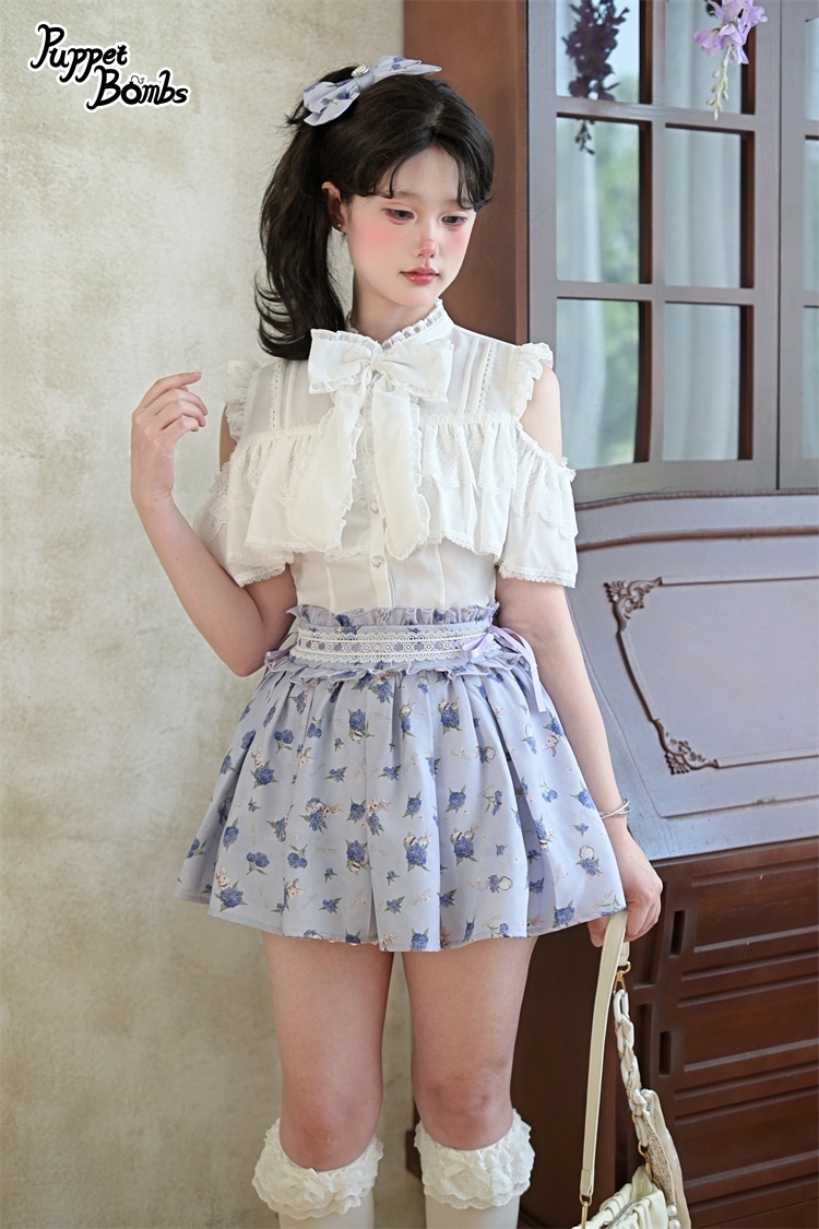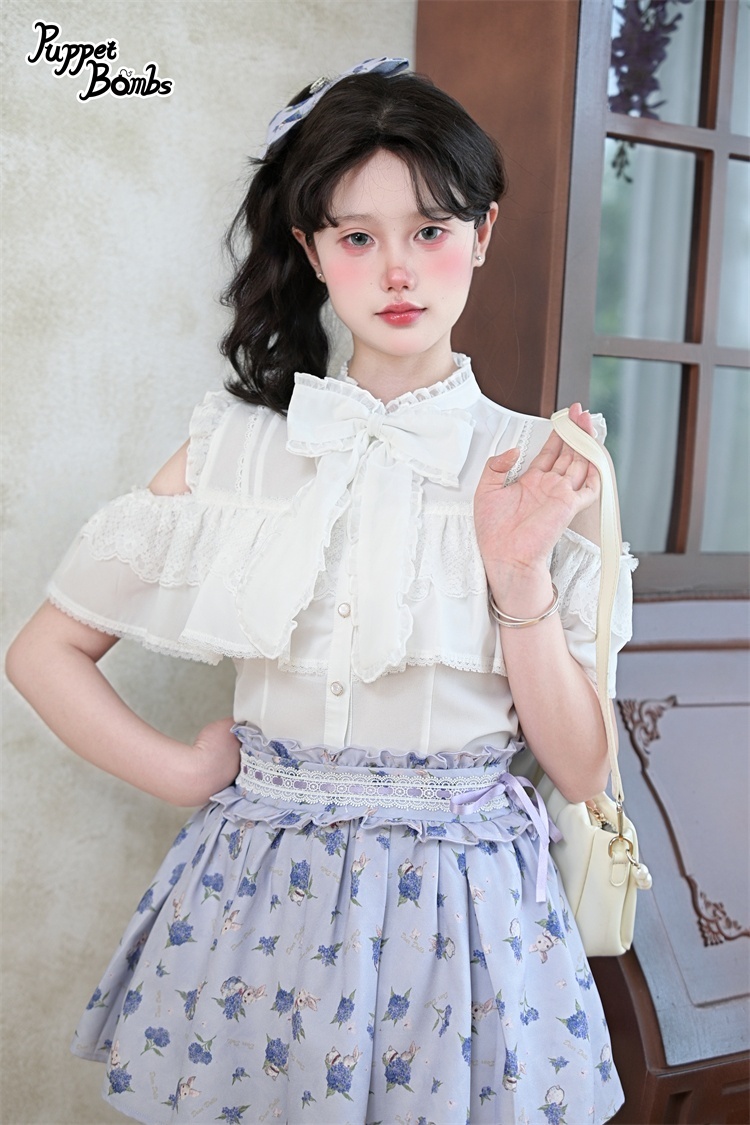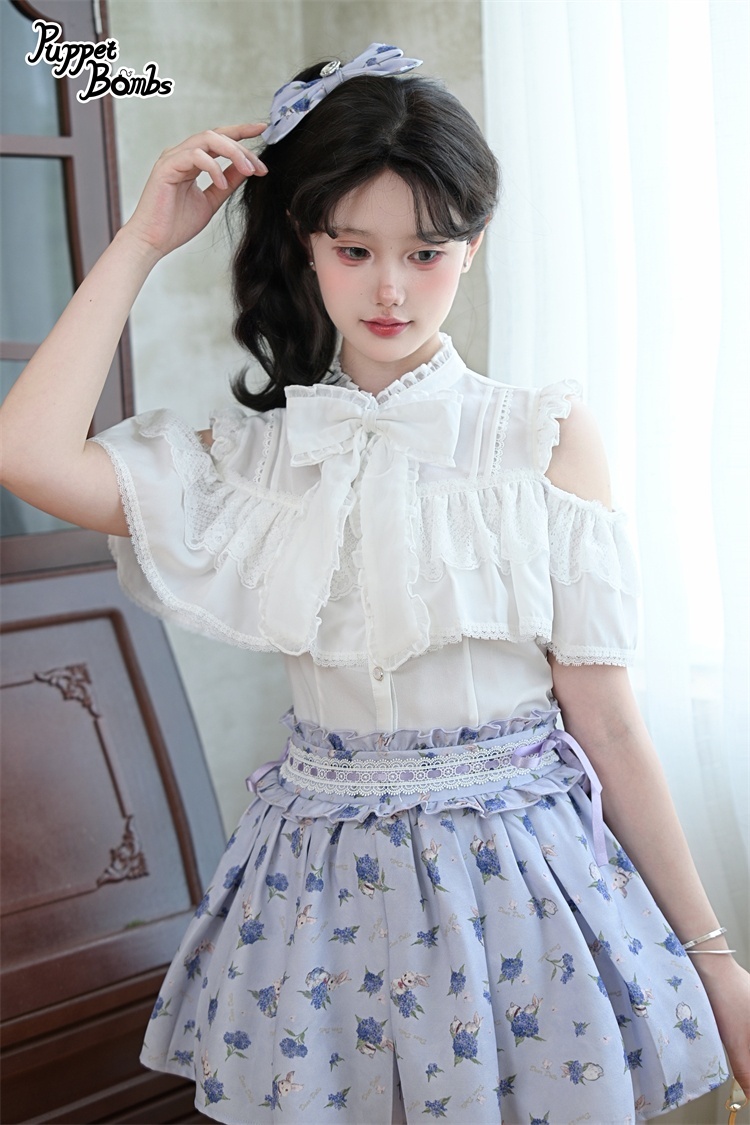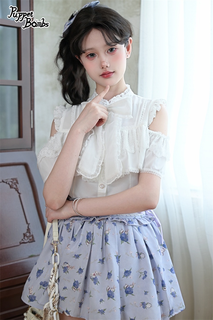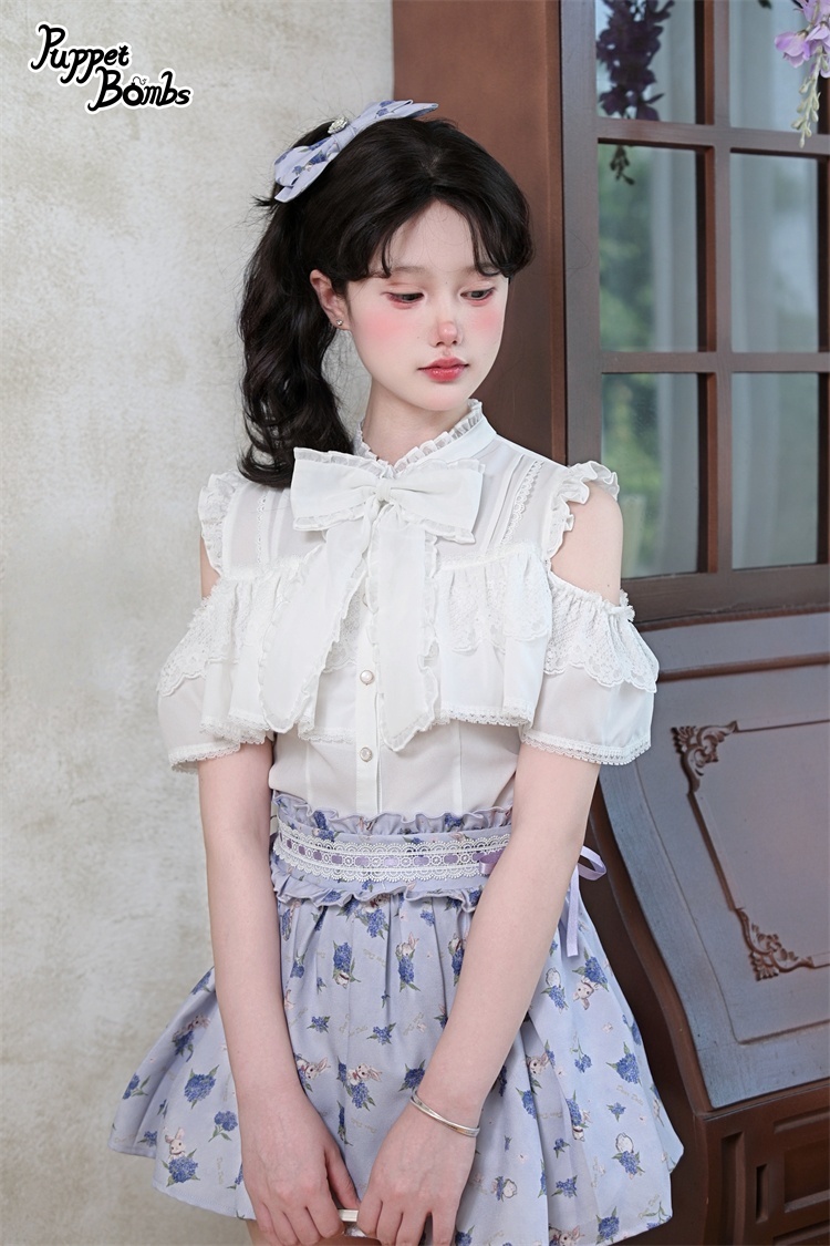 【PuppetBombs】Q474 フリルリボンオフショルブラウス [Q474]