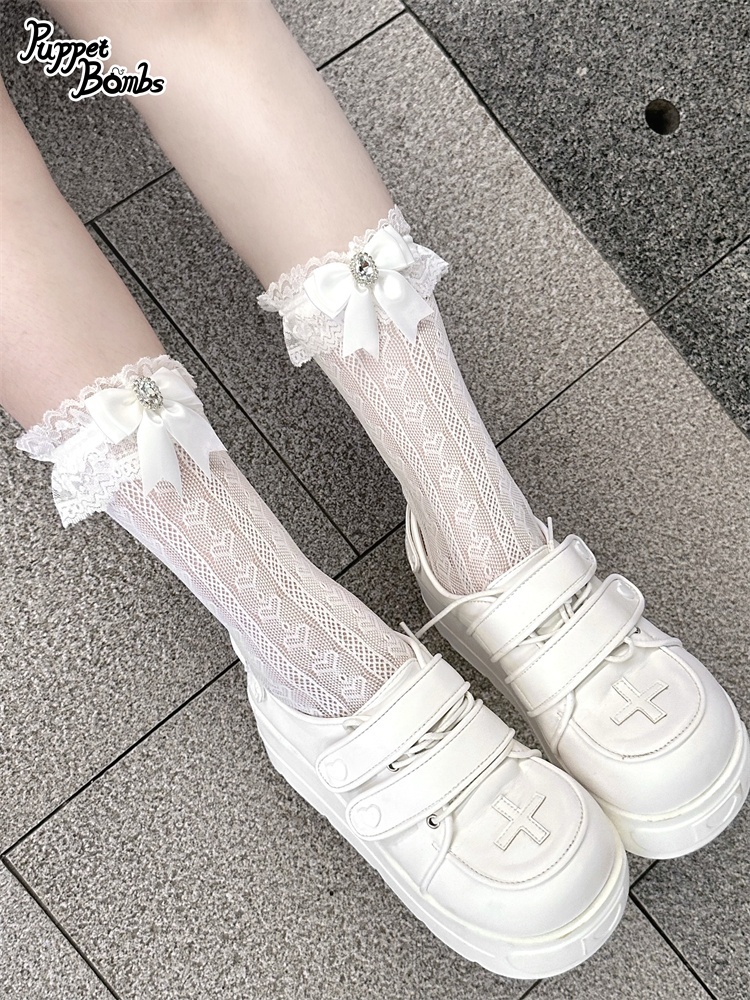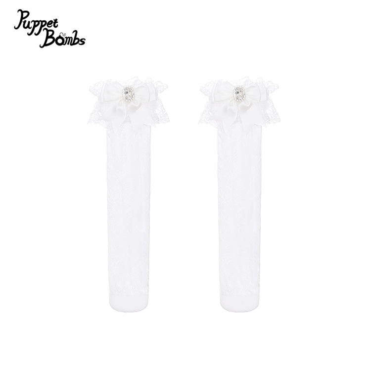 【PuppetBombs】QS180 ビジュー付きリボンレースハイソックス [QS180]