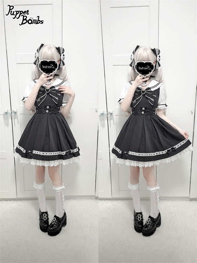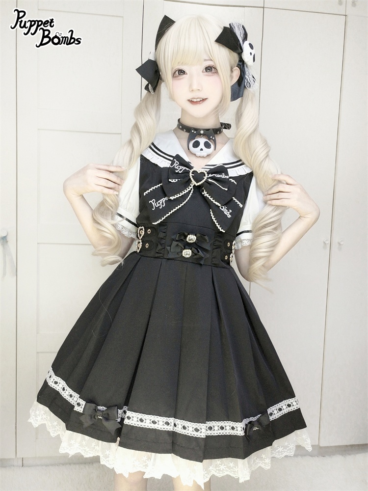 【PuppetBombs】レイヤード風セーラーはしごレースワンピース
