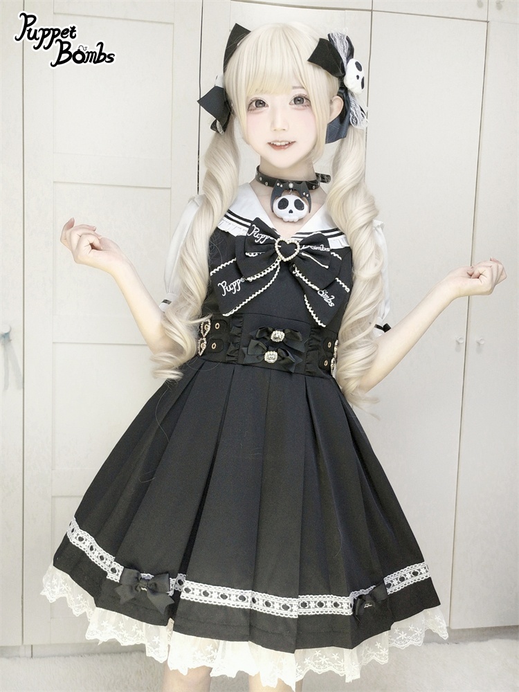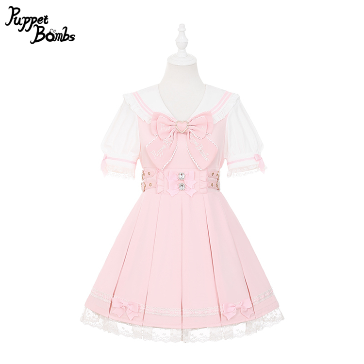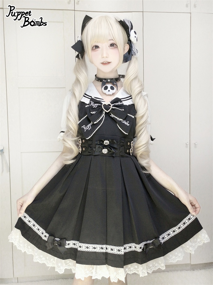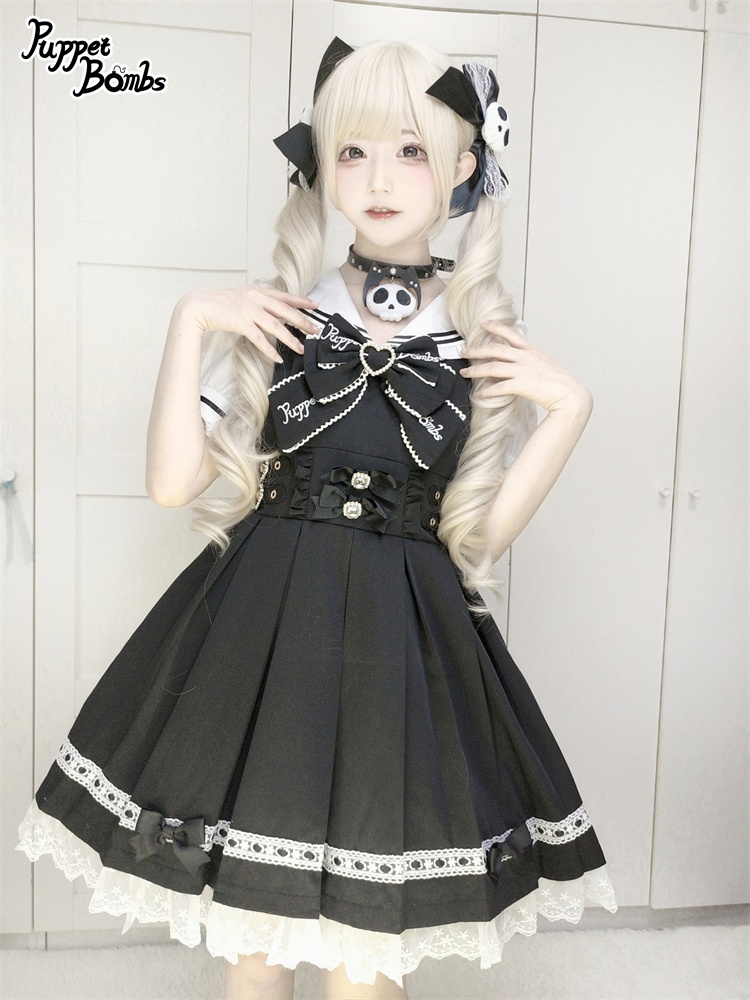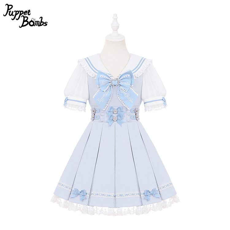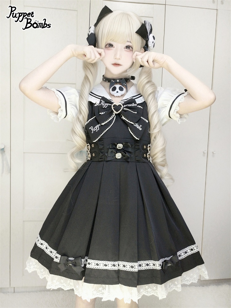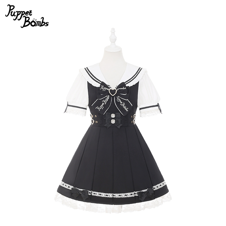 【PuppetBombs】レイヤード風セーラーはしごレースワンピース [Q417 Q435]