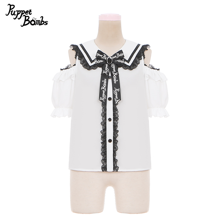 【PuppetBombs】Q135 オープンショルダーパフ袖ブラウス [Q135]