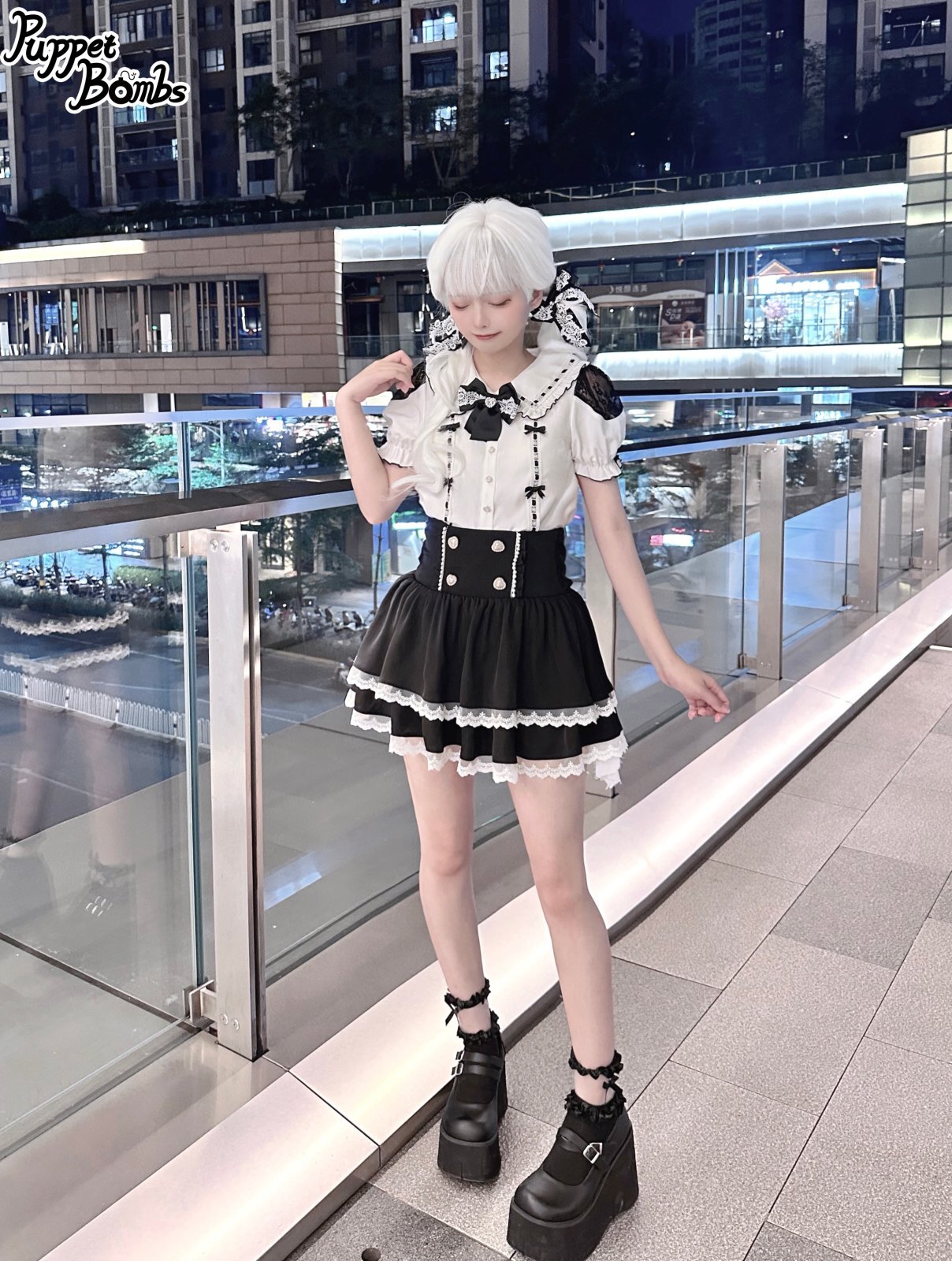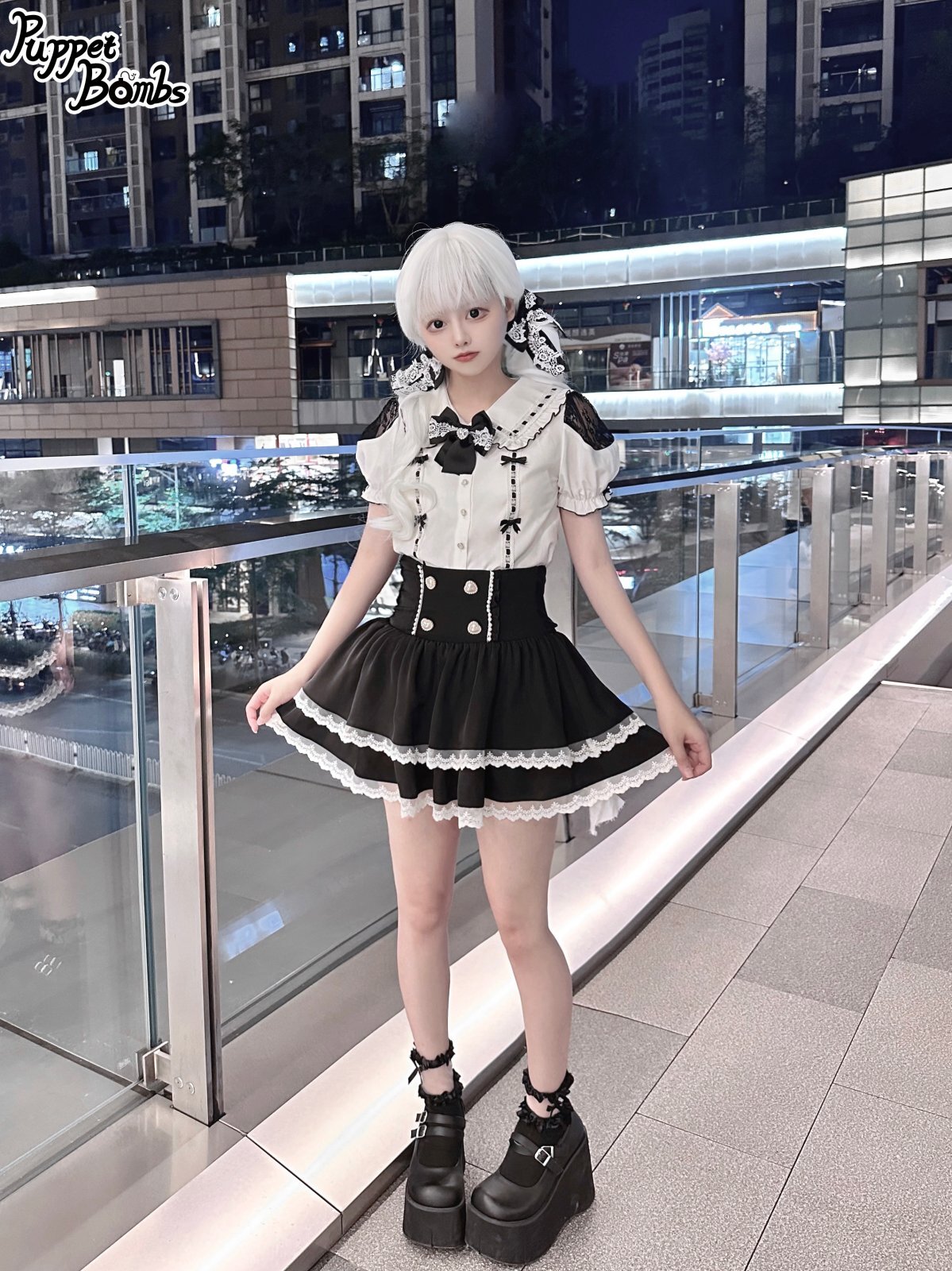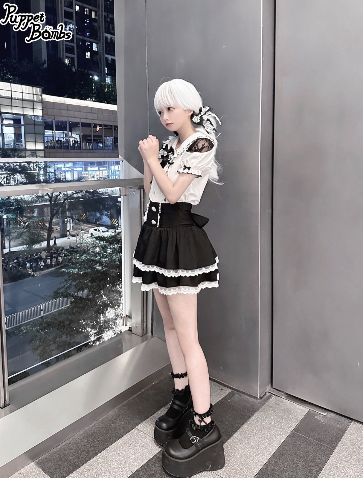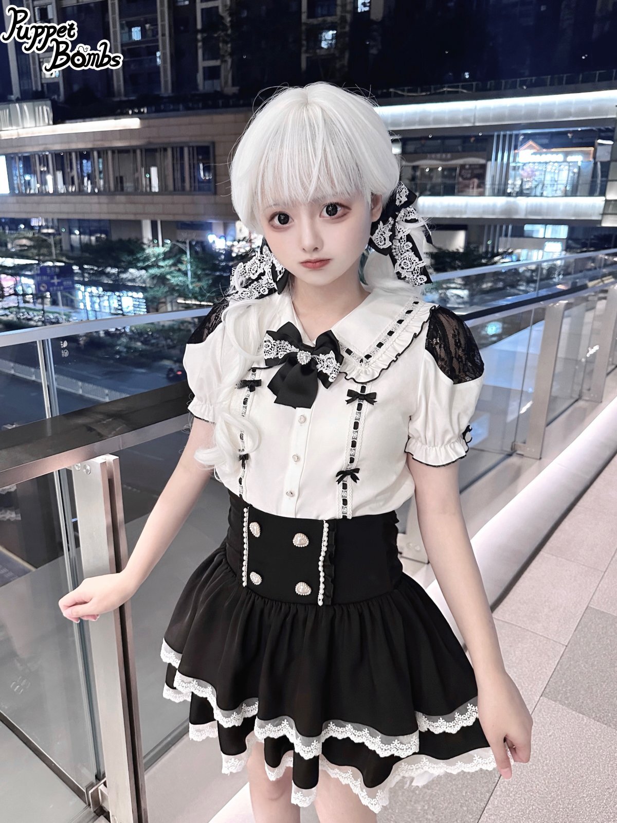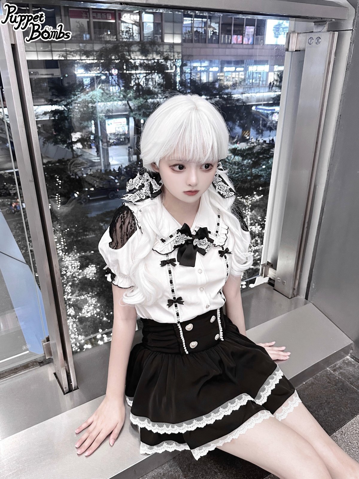 【PuppetBombs】Q279 はしごレースパフ袖ブラウス [Q279]