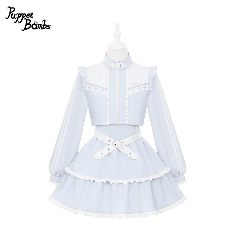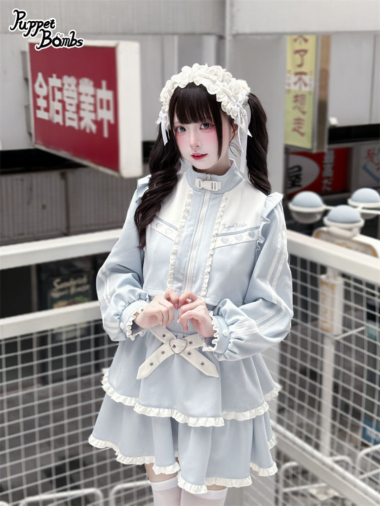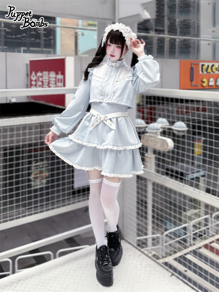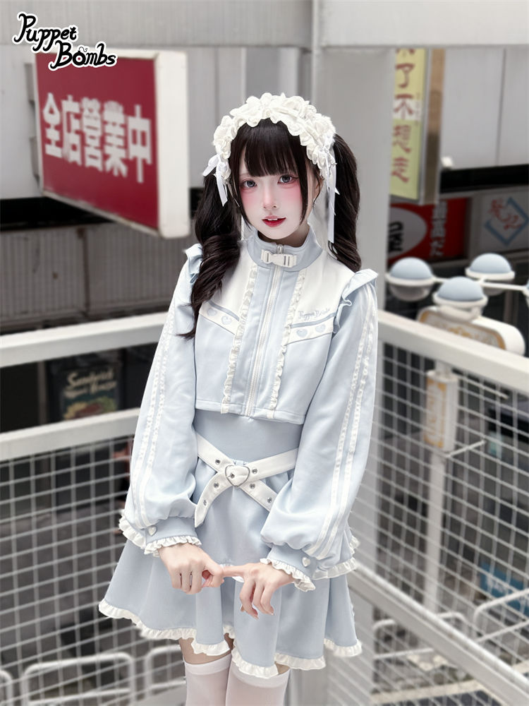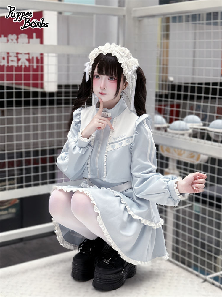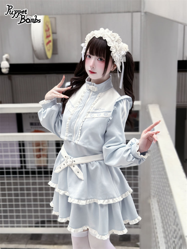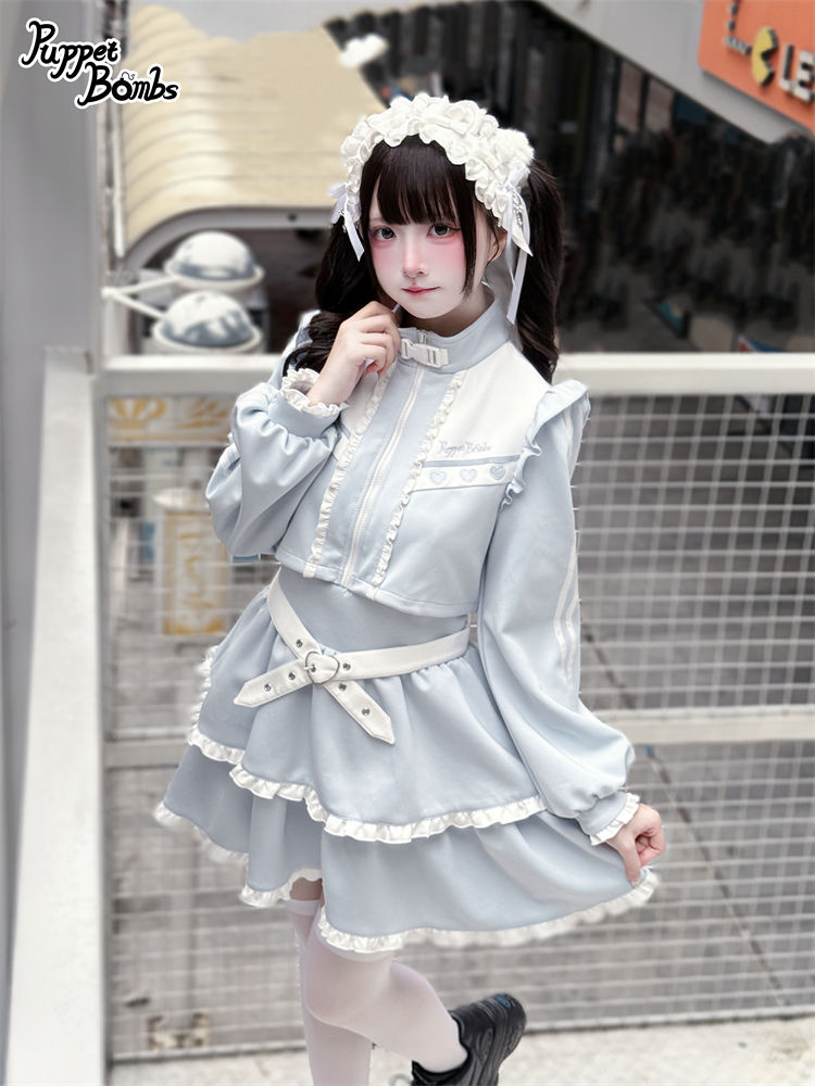 【PuppetBombs】Q467 レイヤード風フリルジャージワンピース