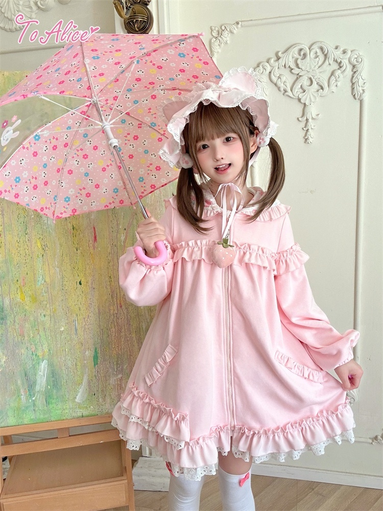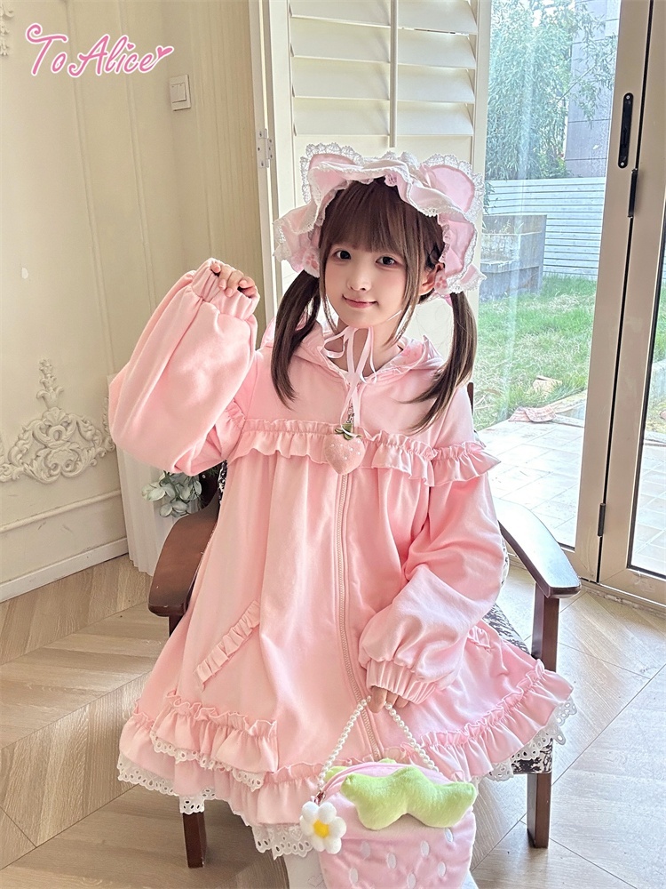 【送料無料】C8533 たれ耳フード付きいちごパーカー《予約受付》 [C8533]