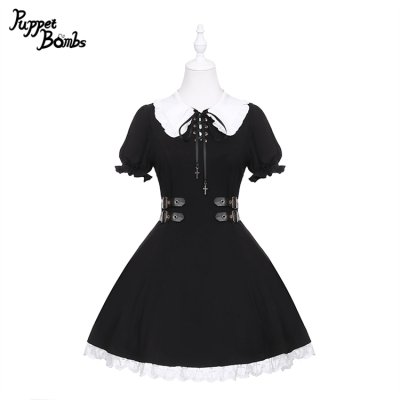 【PuppetBombs】QS156 ロゴプリントリボンビジューヘアクリップセット