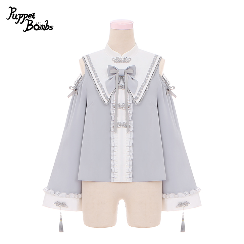 【Last one】【PuppetBombs】Q345 オープンショルダーチャイナフレア袖トップス [Q345]