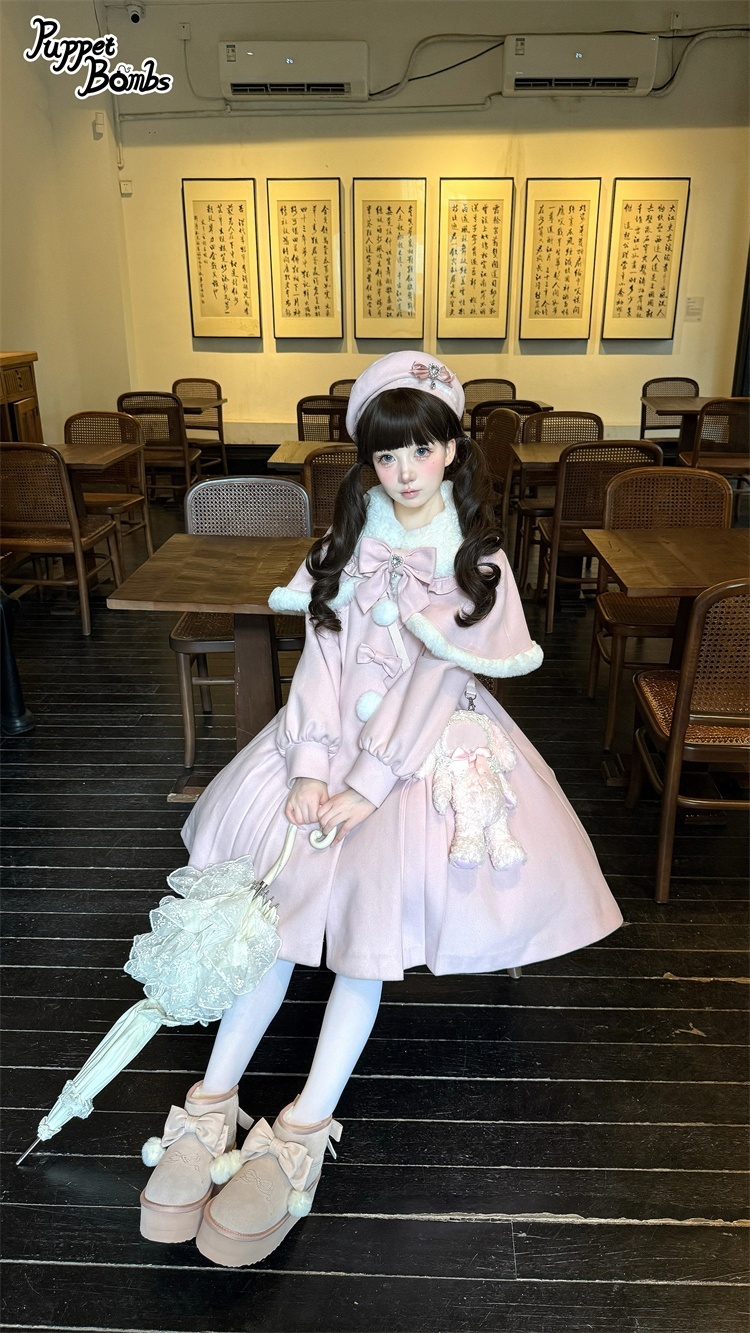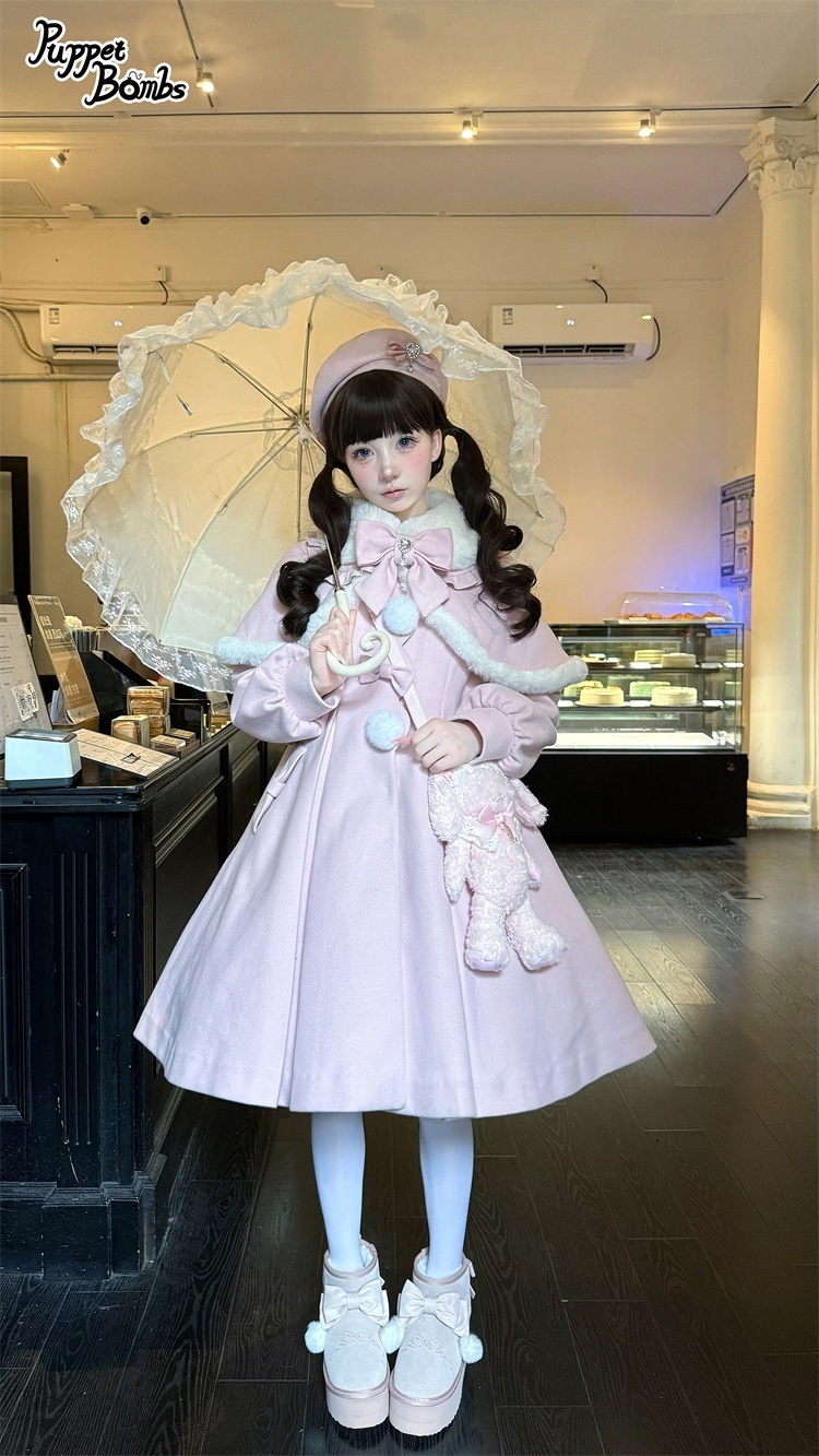 【PuppetBombs】Q103 ケープ付きスカラップリボンコート [Q103]