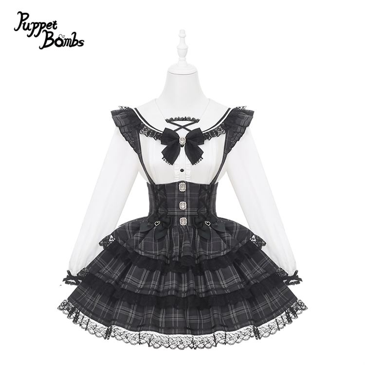 【送料無料】Q506チェックティアードサス付きスカート《予約受付》 [Q506]