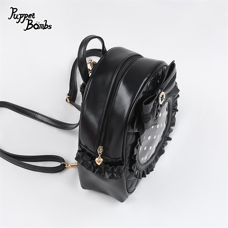 ハートクリアポケットデザインのキルティング素材のリュック。