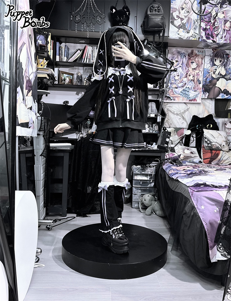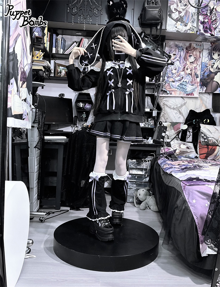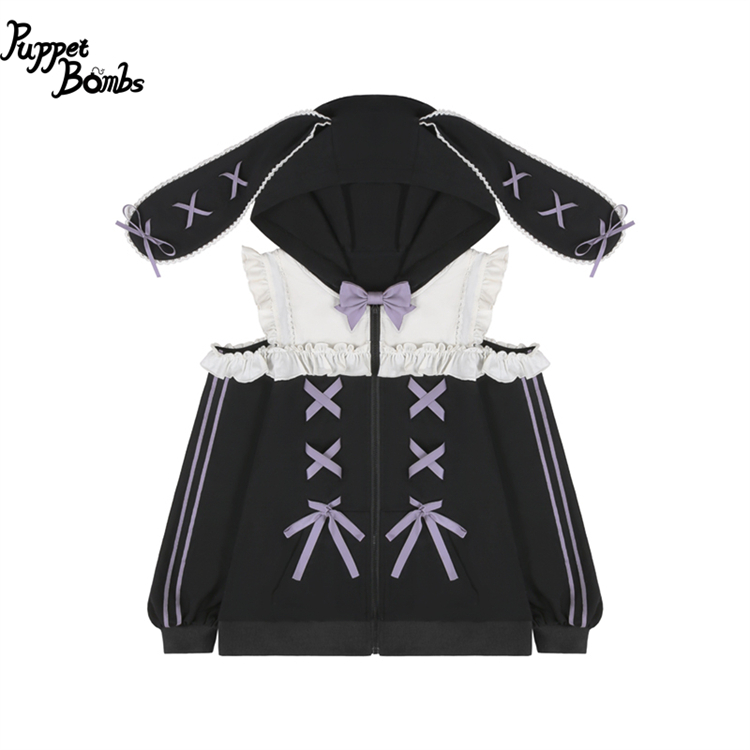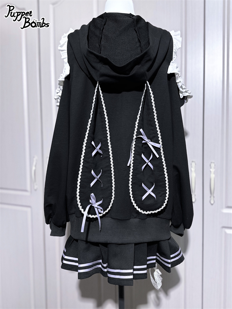 【PuppetBombs】Q14オープンショルダーレースアップパーカー [Q14]