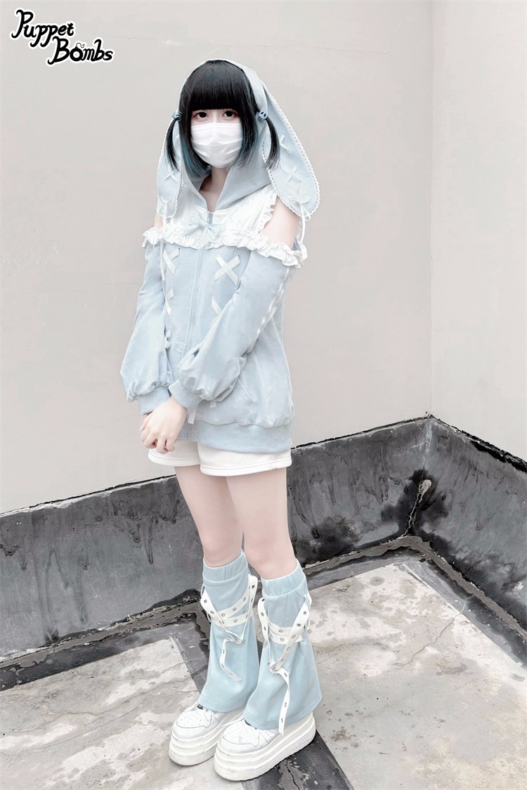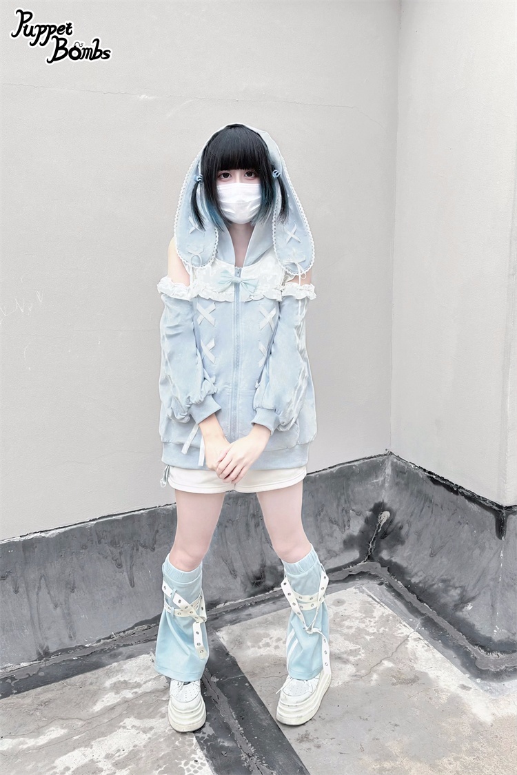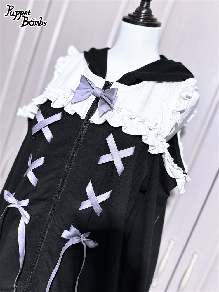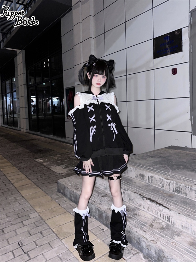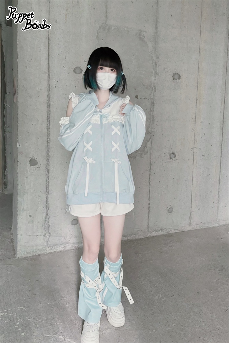- > 【PuppetBombs】Q14オープンショルダーレースアップパーカー
