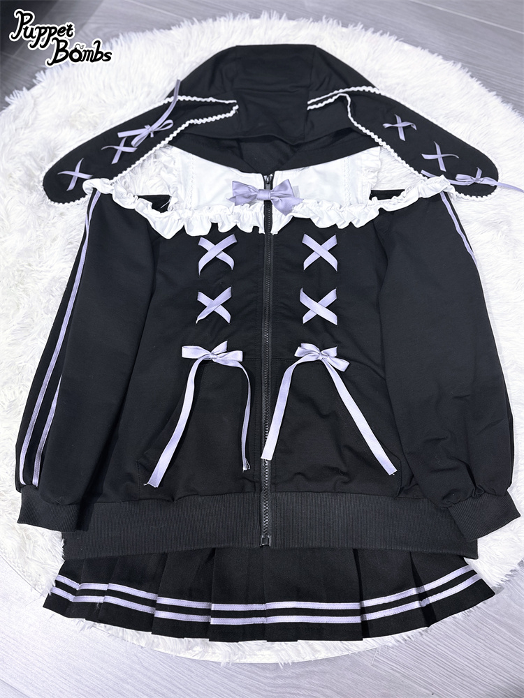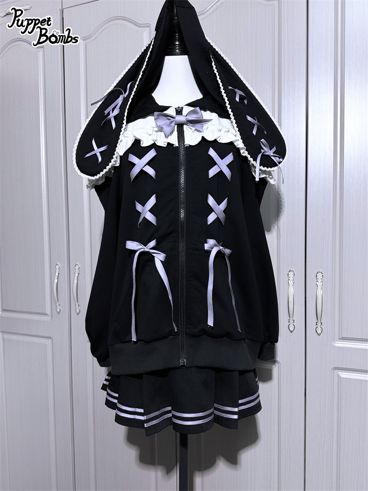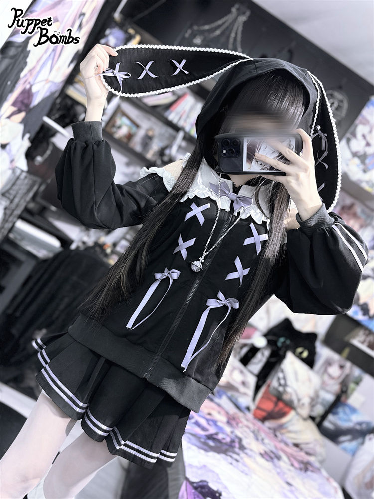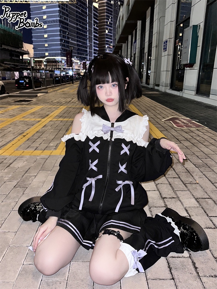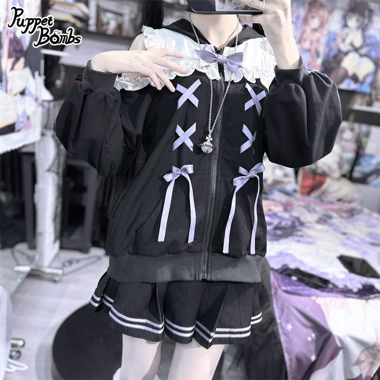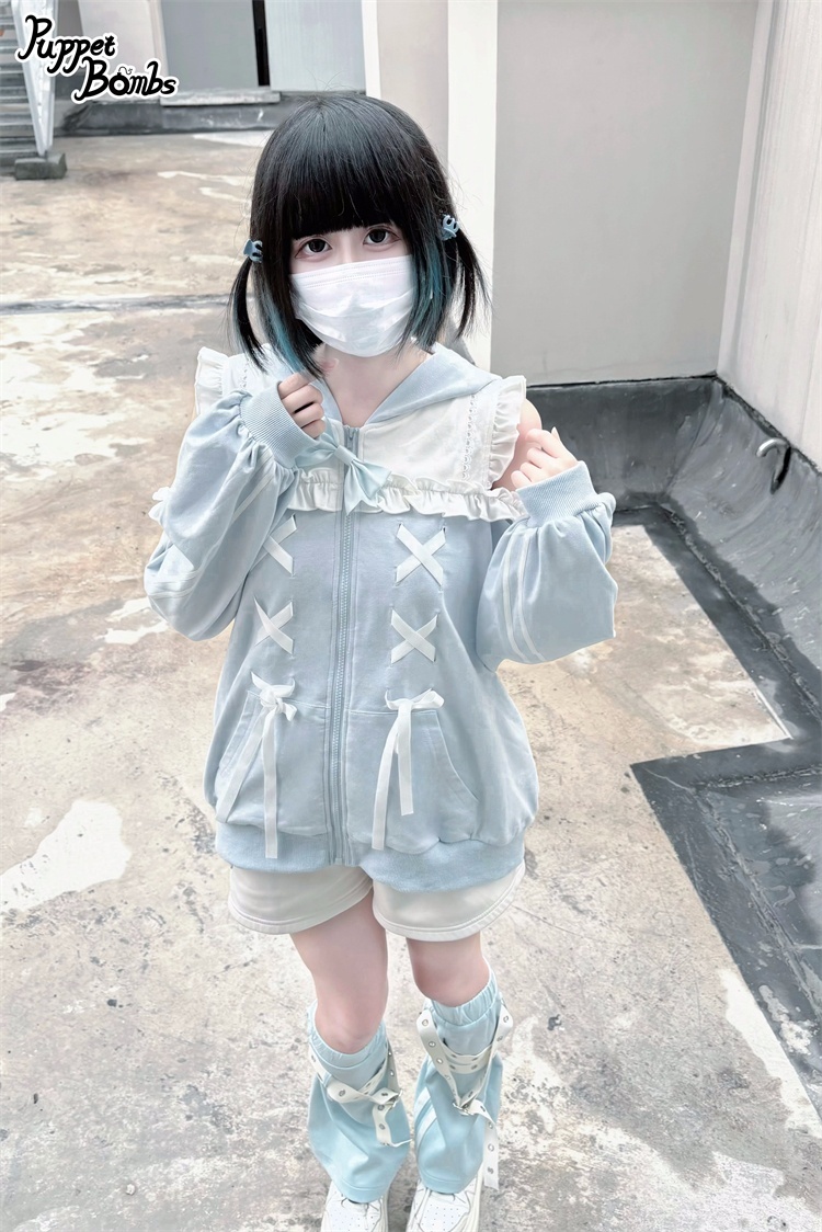 - > 【PuppetBombs】Q14オープンショルダーレースアップパーカー