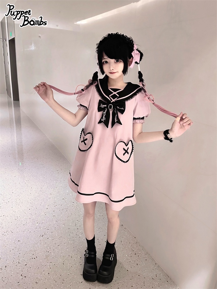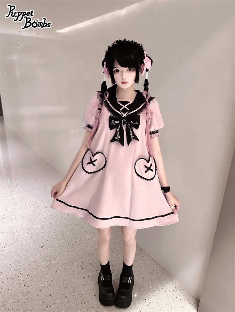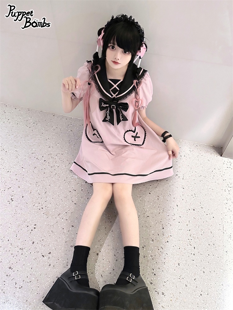 【Puppet Bombs】Q178 ハートポケットセーラーワンピース【30%OFF】